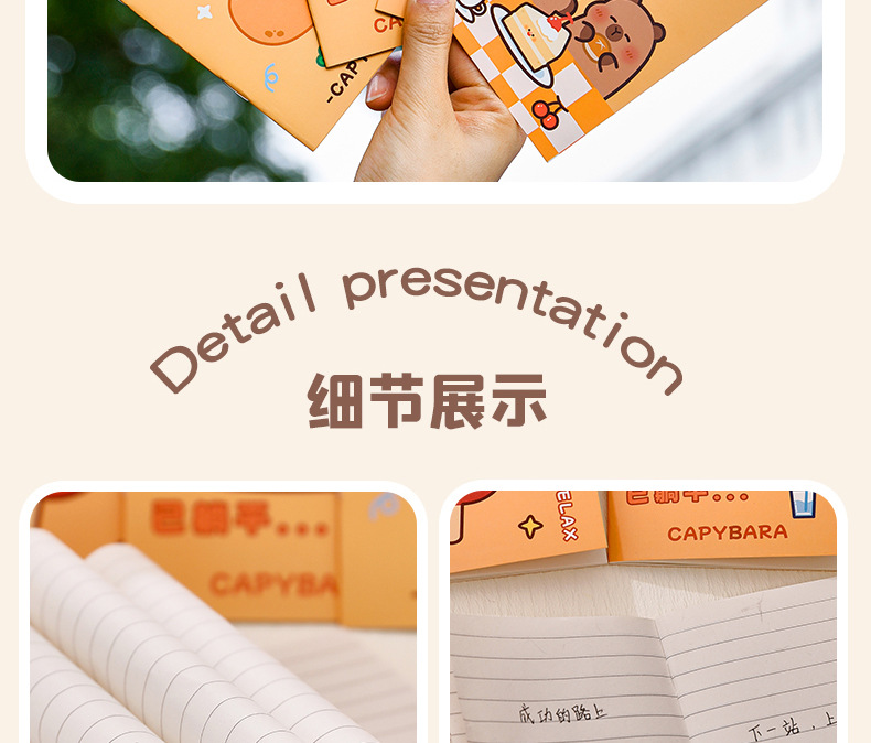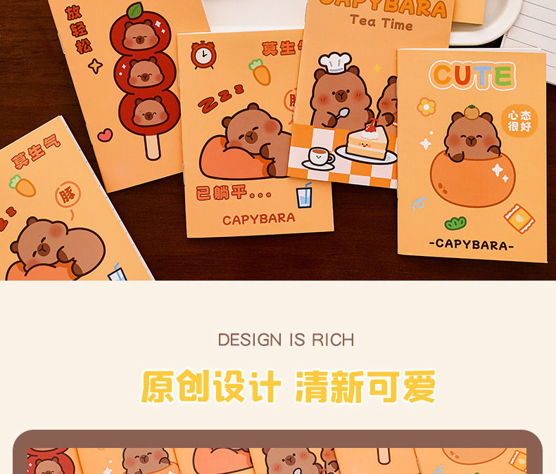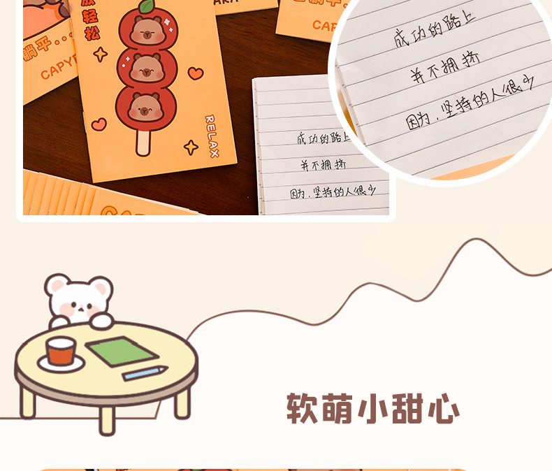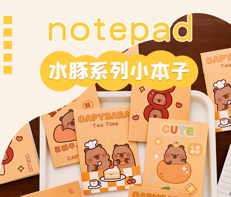 卡通巴拉小本子卡通水豚横线笔记本学生文具小礼品便携迷你记事本