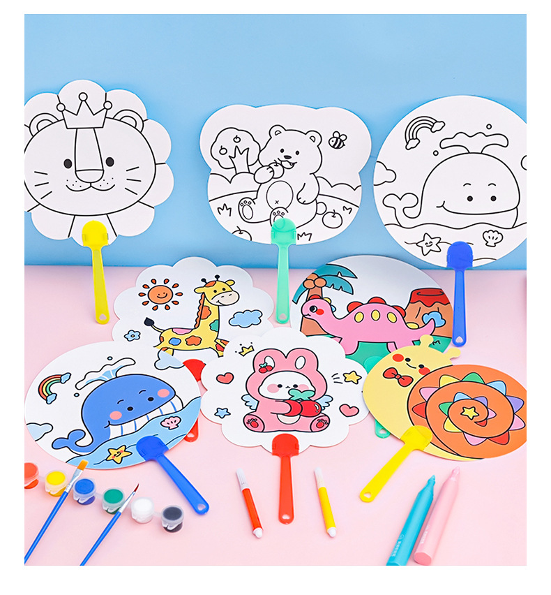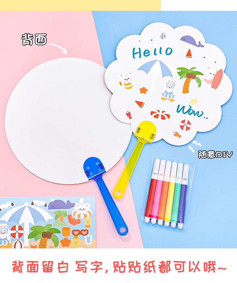卡通diy涂鸦扇子儿童可爱手绘空白圆扇儿童节涂色绘画塑料小扇子