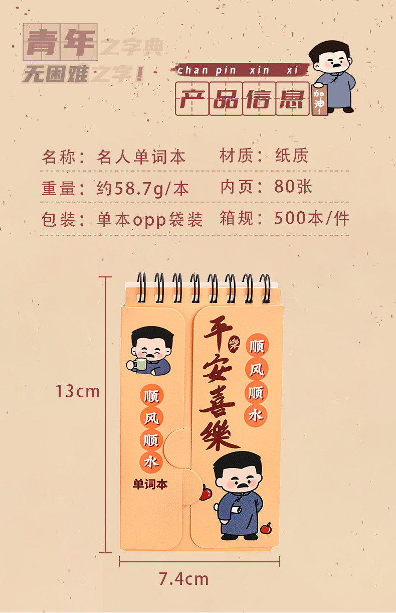 新青年文字单词本学生便携活页高颜值便签本励志小奖品卡通笔记本