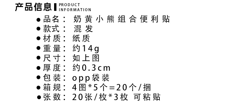 黄色小熊便利贴学生异型n次贴便签纸学习文具粘性便签文具小礼品