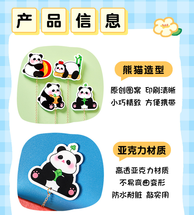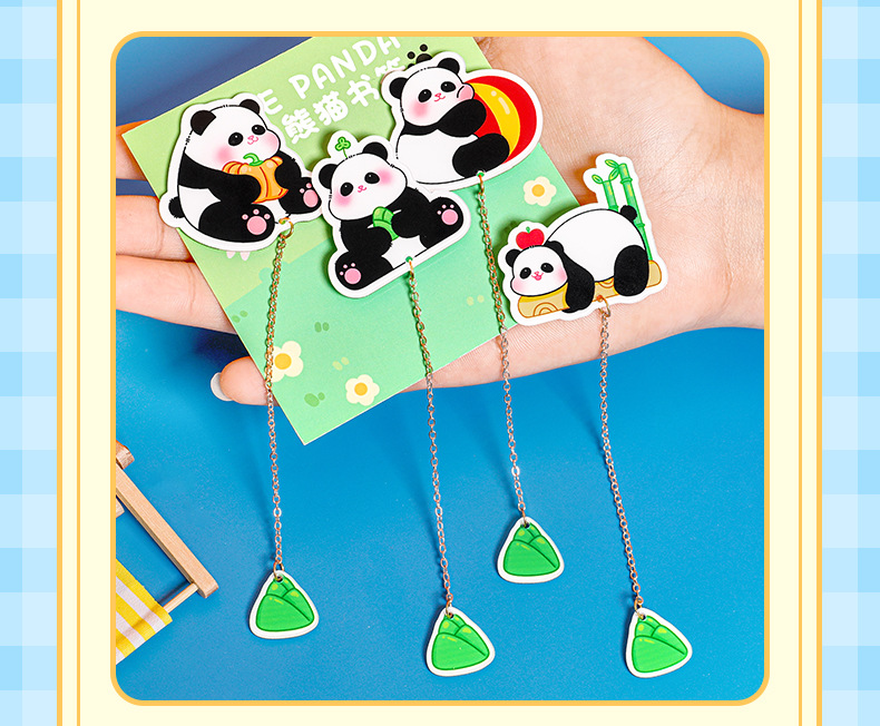 熊猫金属书签中国风小学生奖品礼物可爱链条挂件吊坠文创礼品书签