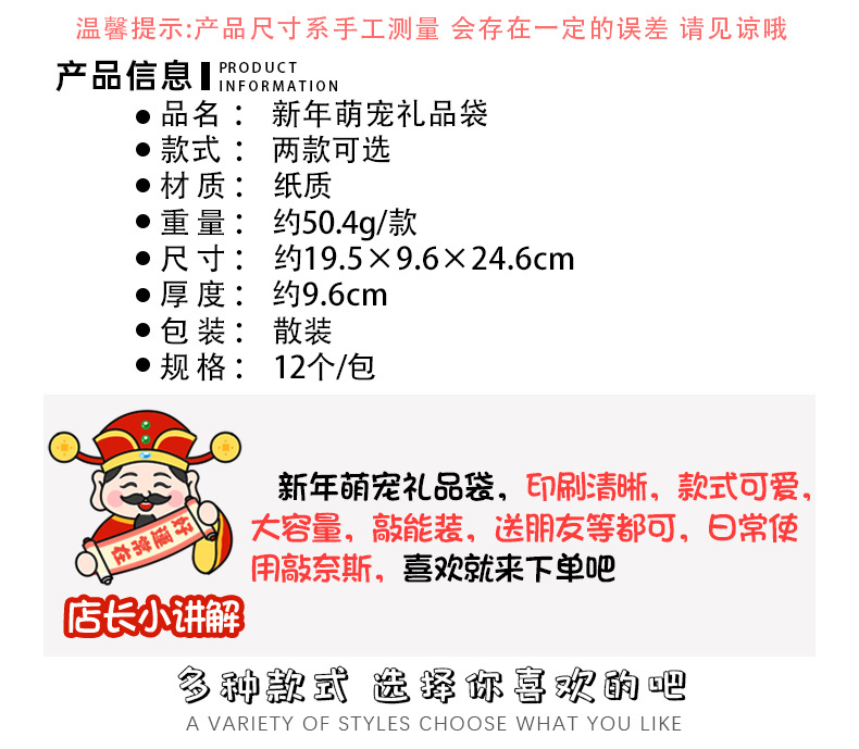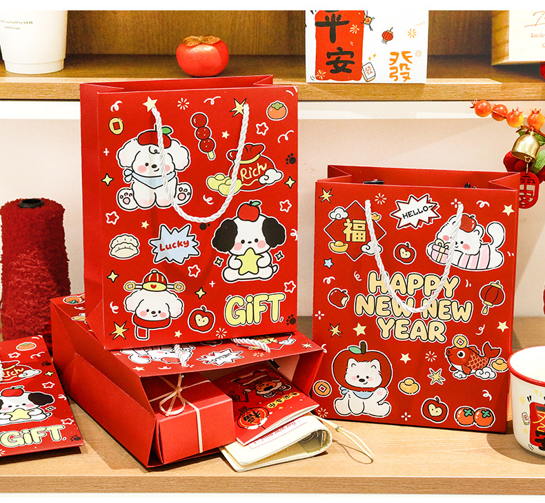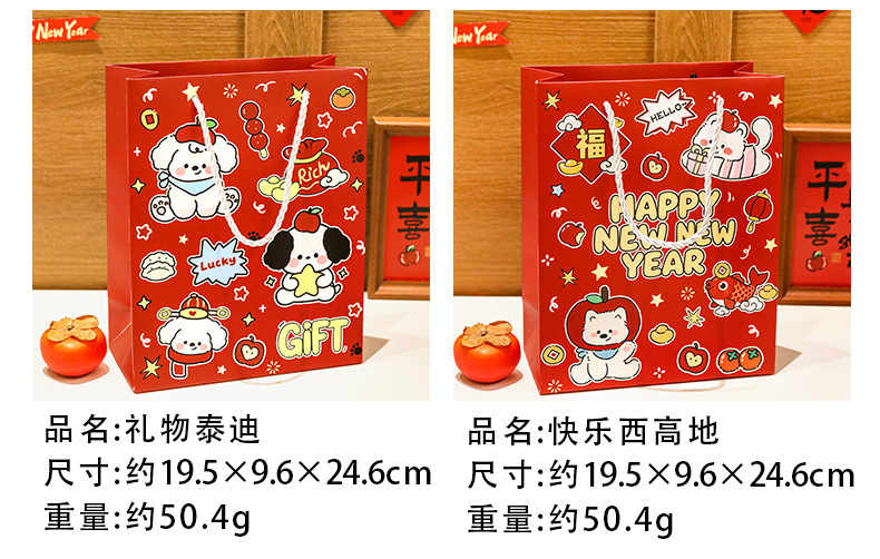 新年礼品袋可爱西高地春节过年礼物包装袋学生新年小礼品手提袋