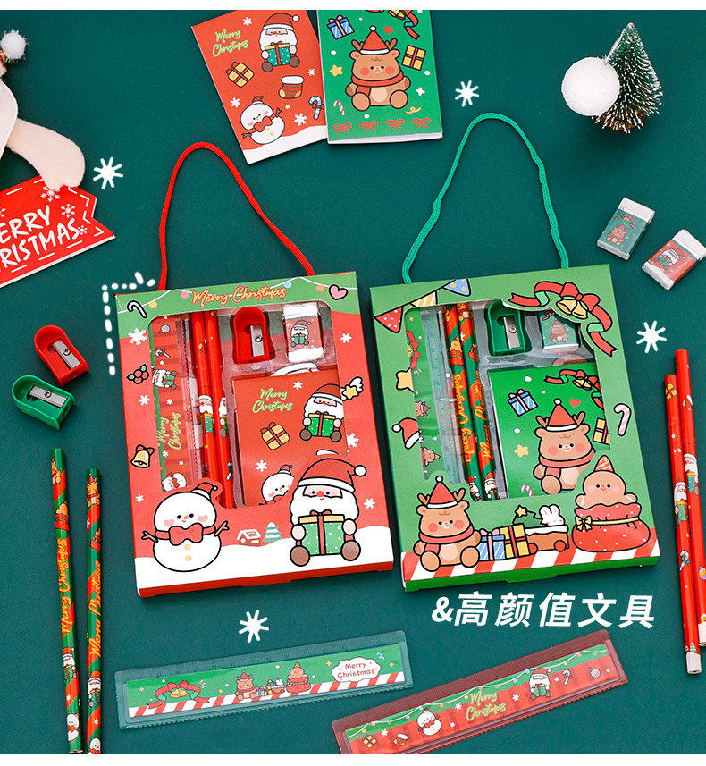 儿童圣诞节文具套装学习用品礼物伴手礼学生圣诞节套装文具小礼品