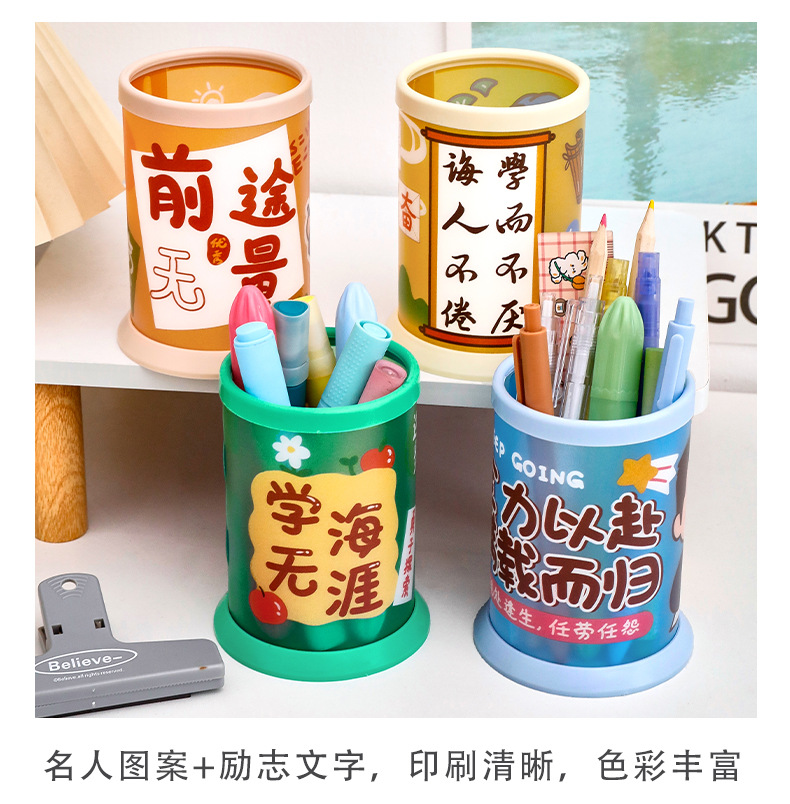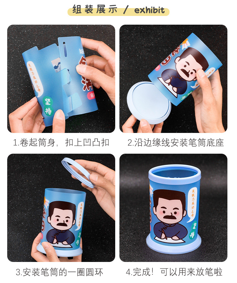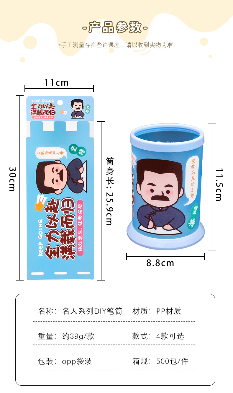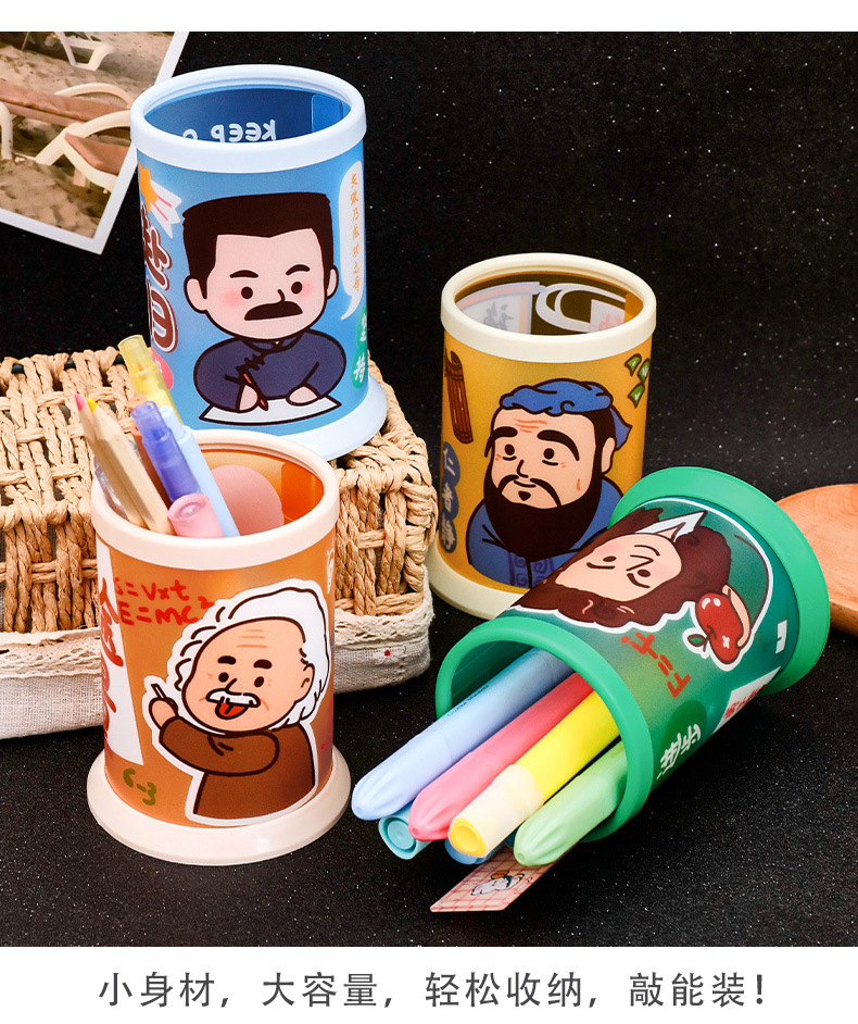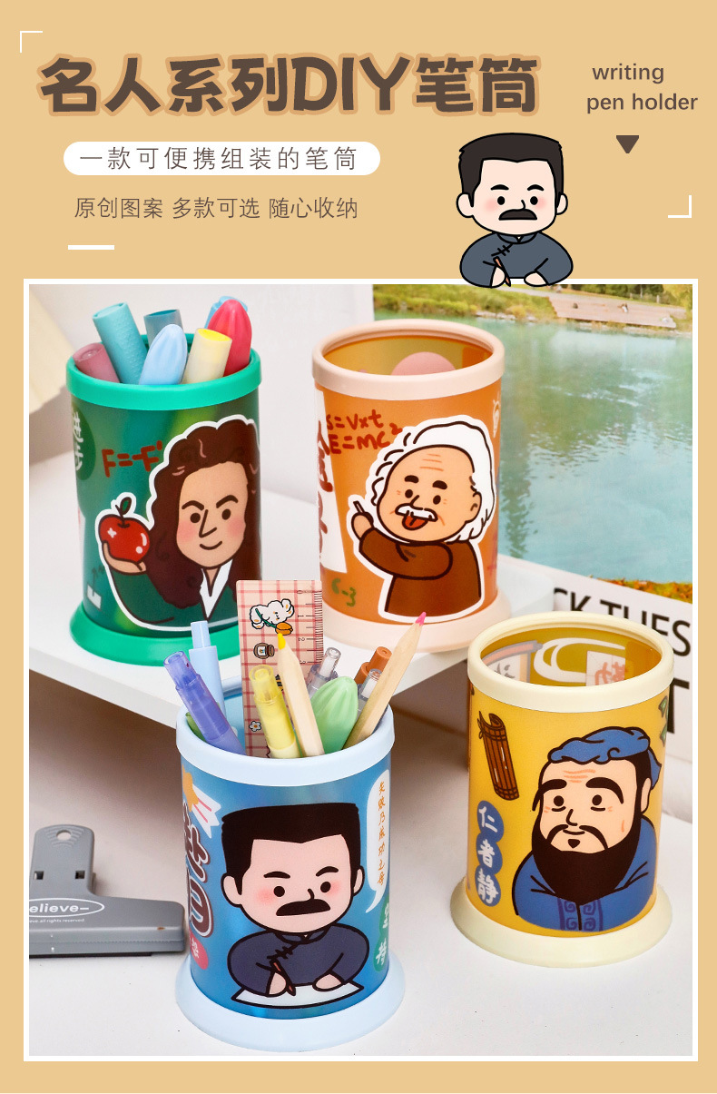 名人折叠笔筒学生大容量收纳diy组装笔桶文具礼品励志文字收纳盒