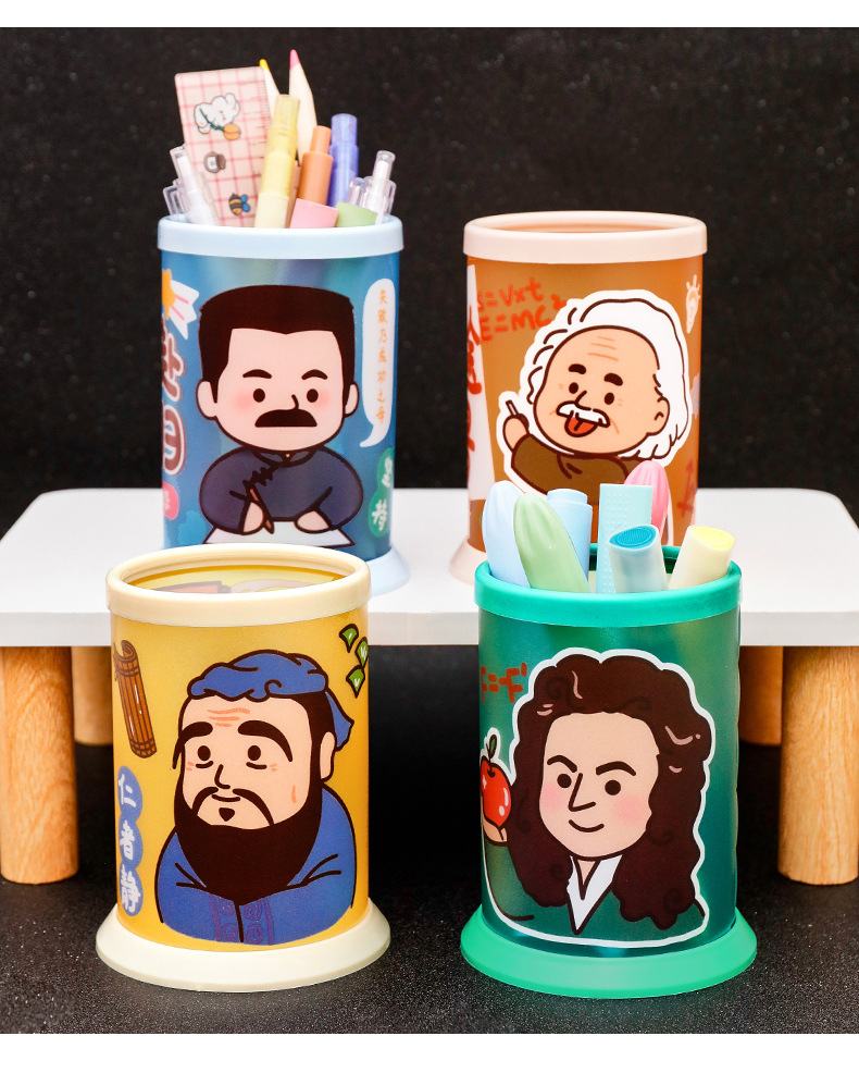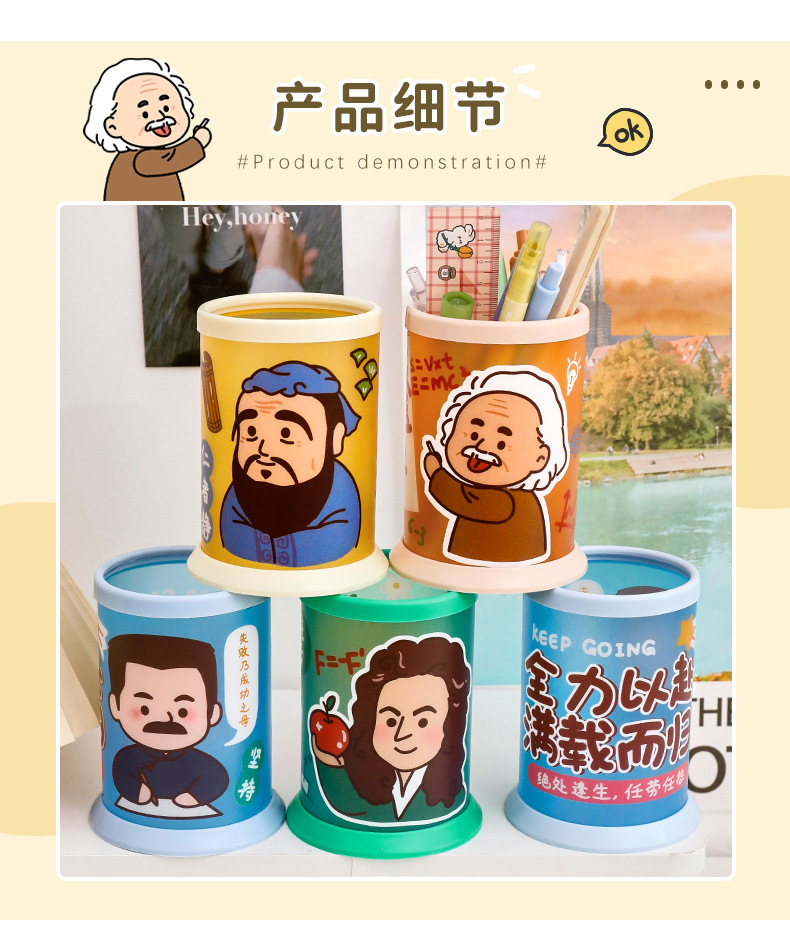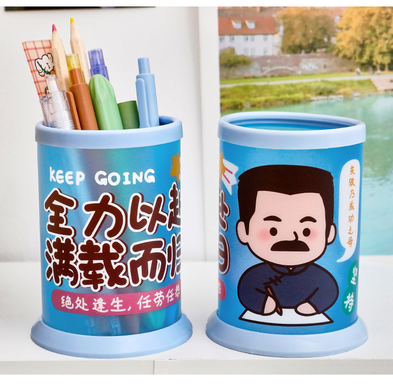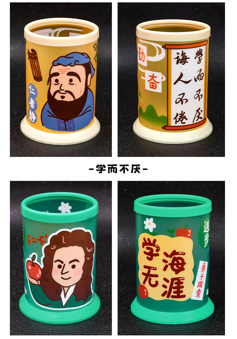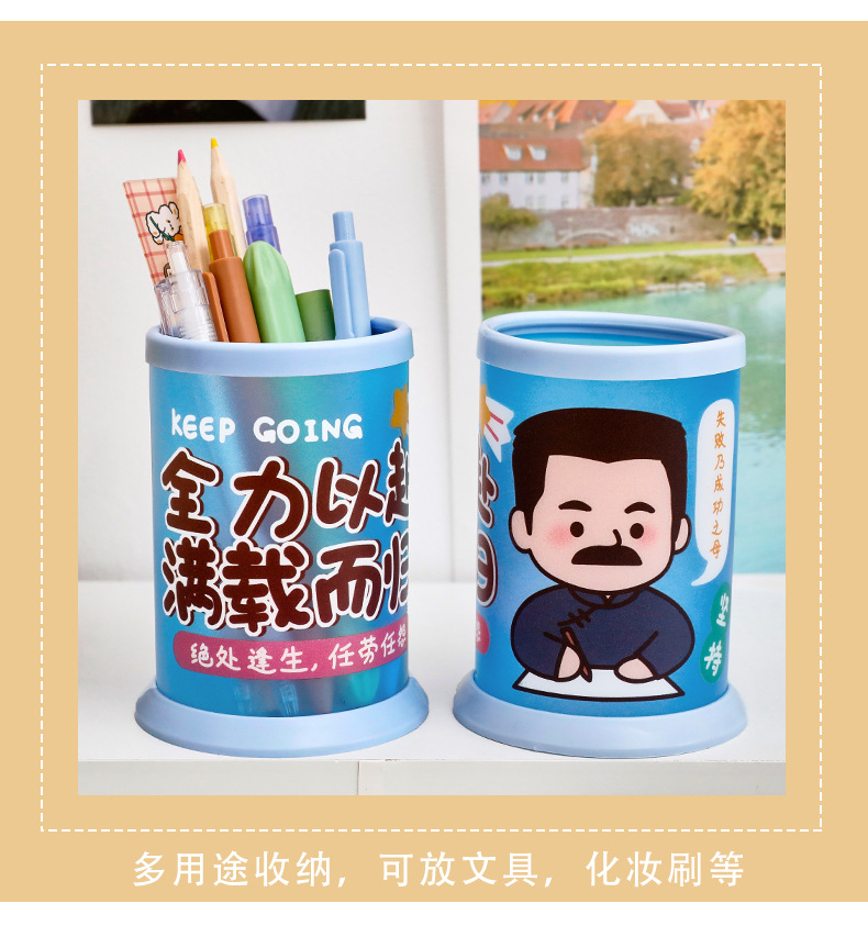 名人折叠笔筒学生大容量收纳diy组装笔桶文具礼品励志文字收纳盒