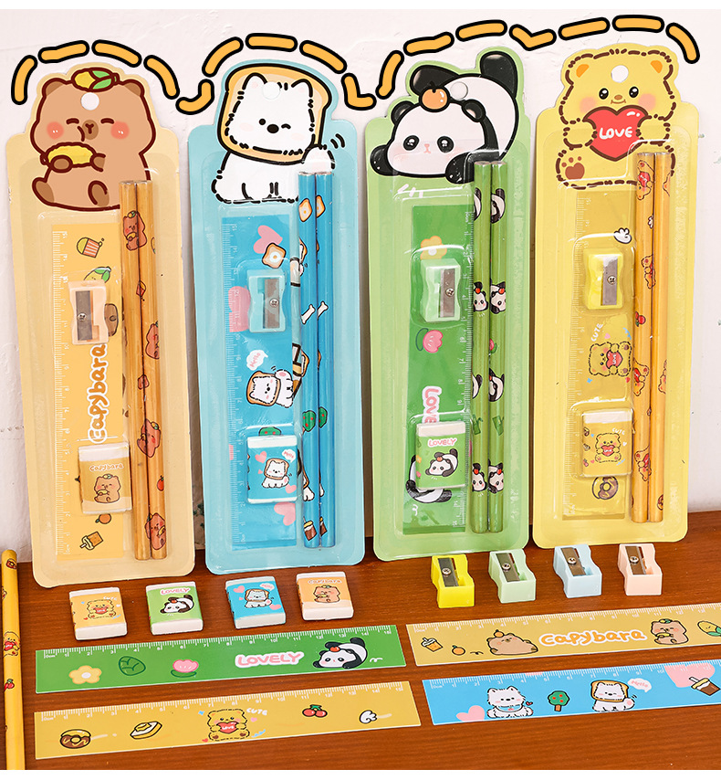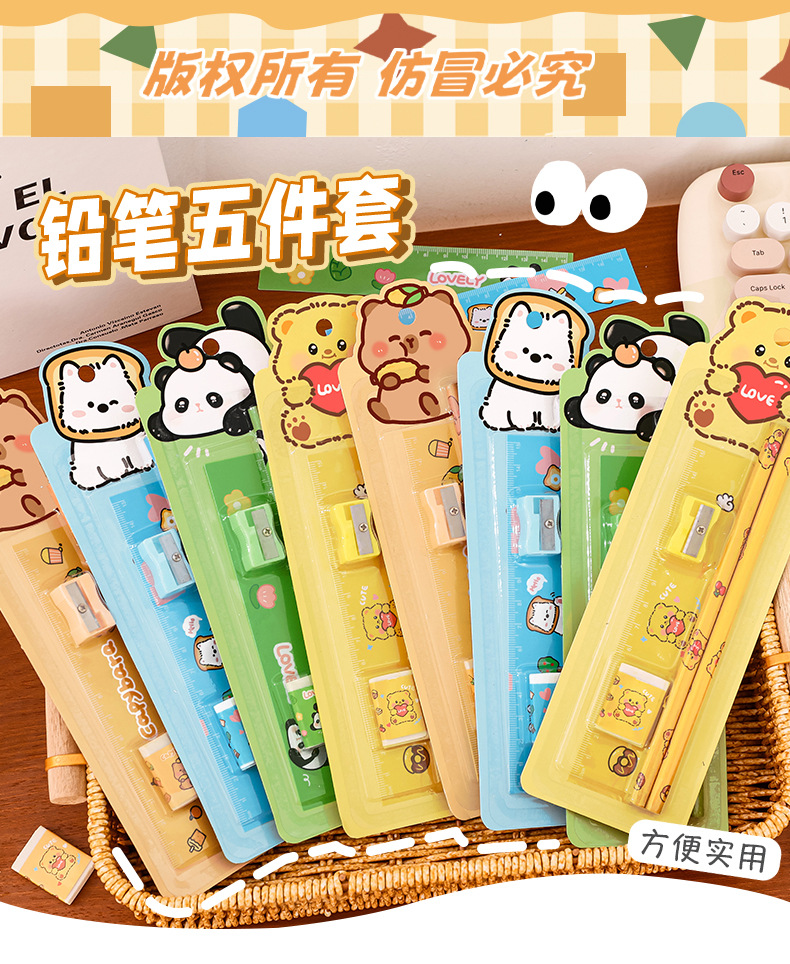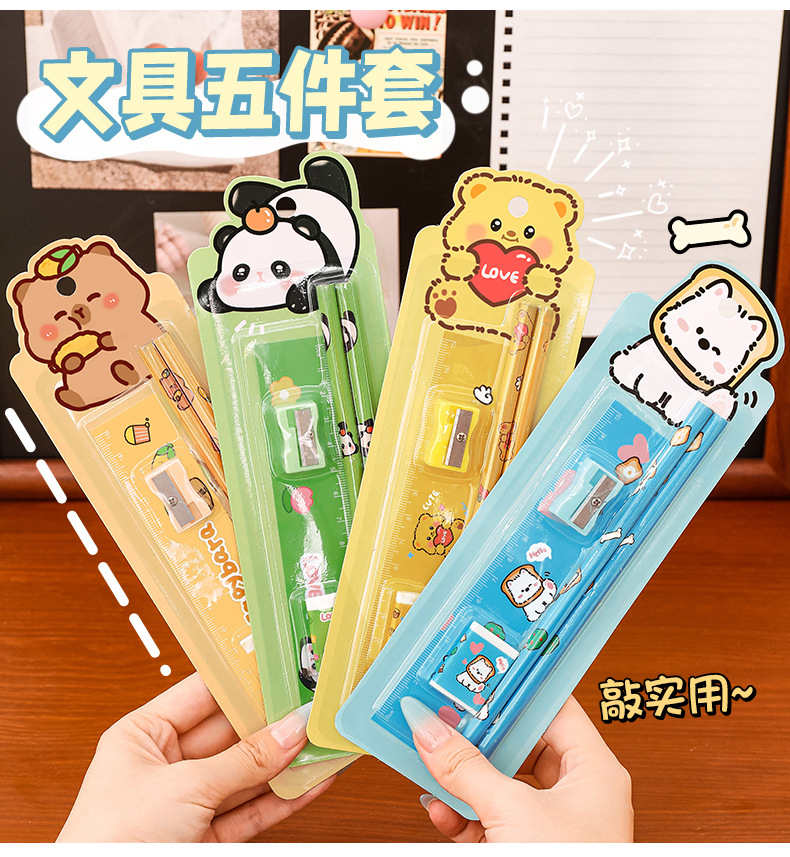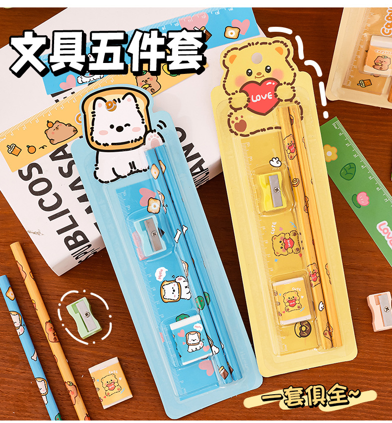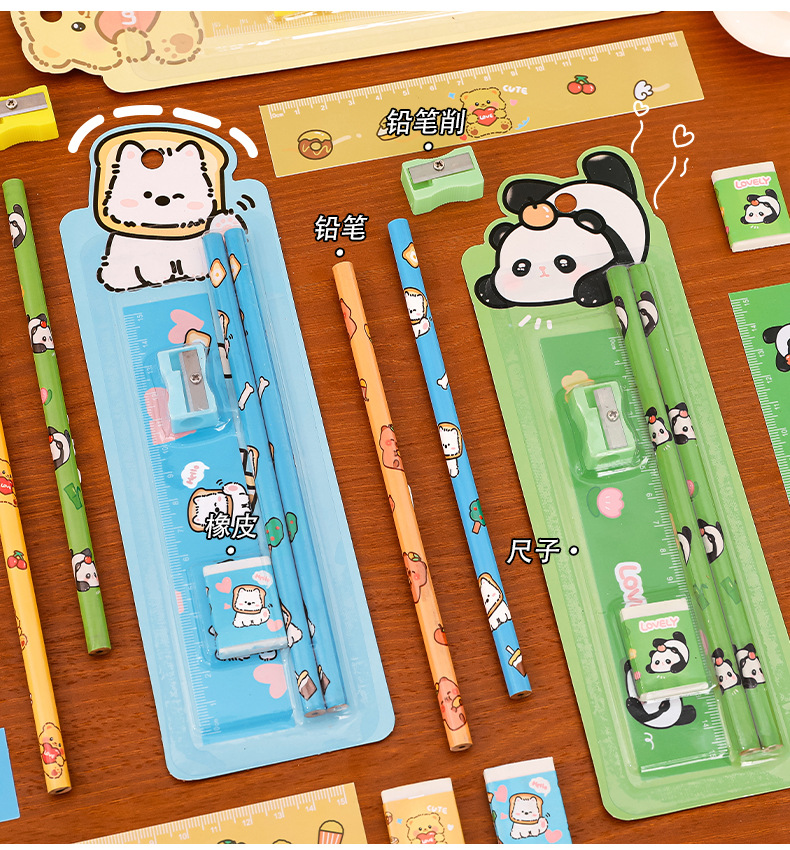 小学生文具套装卡通儿童学习用品铅笔礼包文具奖品五件套小礼品