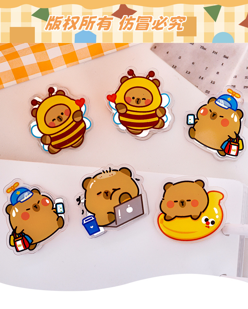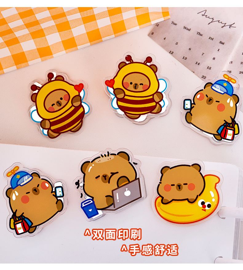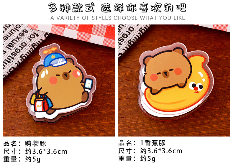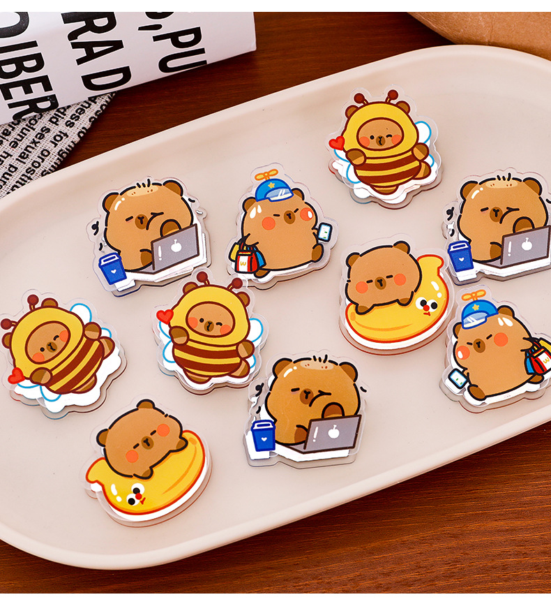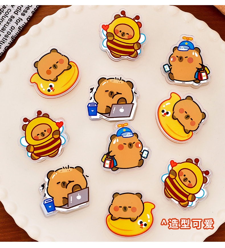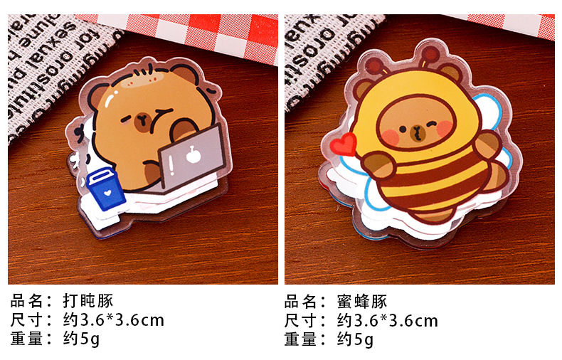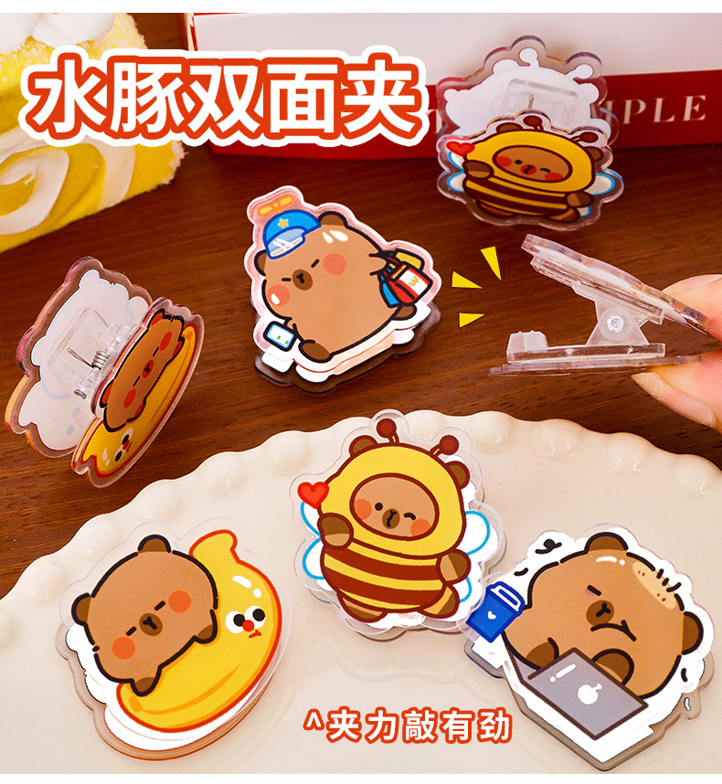 卡皮巴拉亚克力夹可爱卡通动物夹子创意学生试卷夹零食封口小夹子
