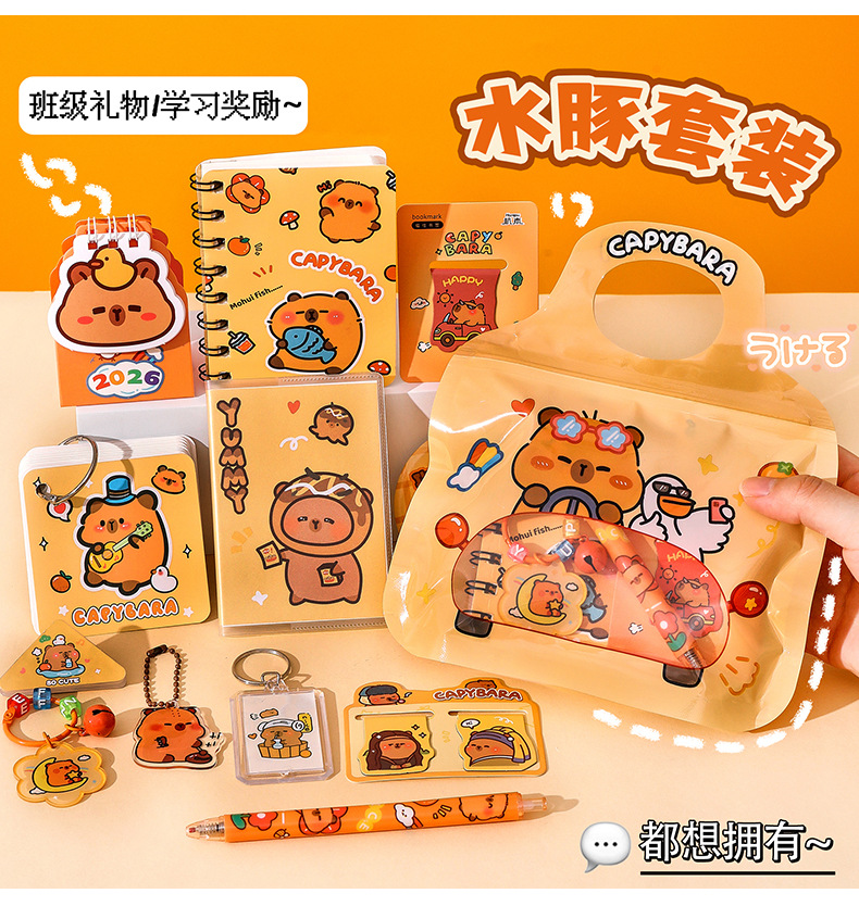 卡皮巴拉文具套装学生文具奖励礼物伴手礼批发水豚新年礼品套装