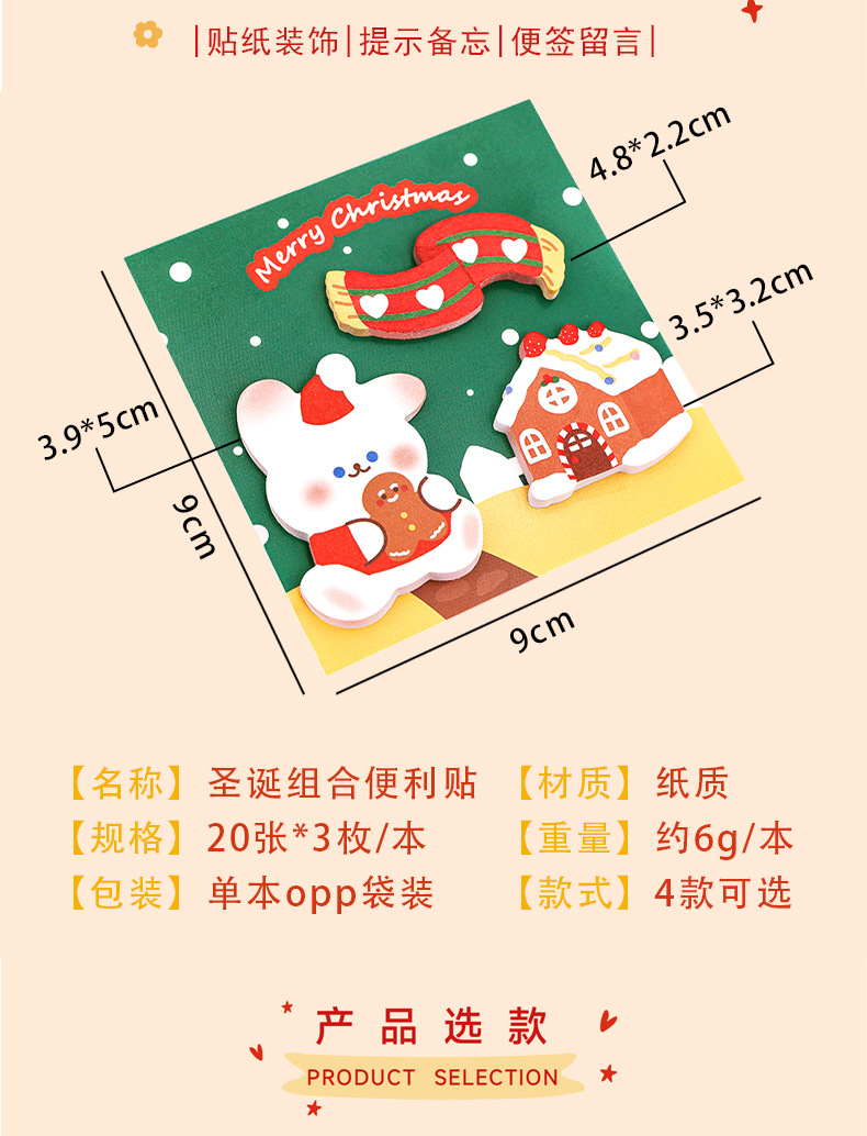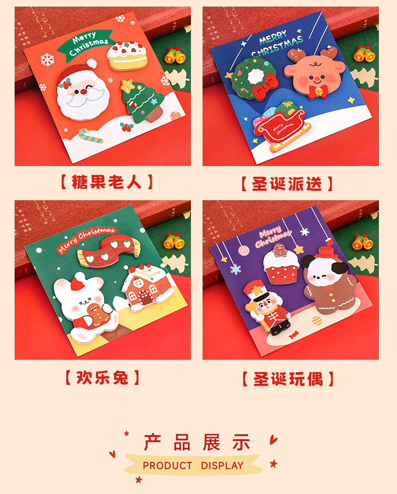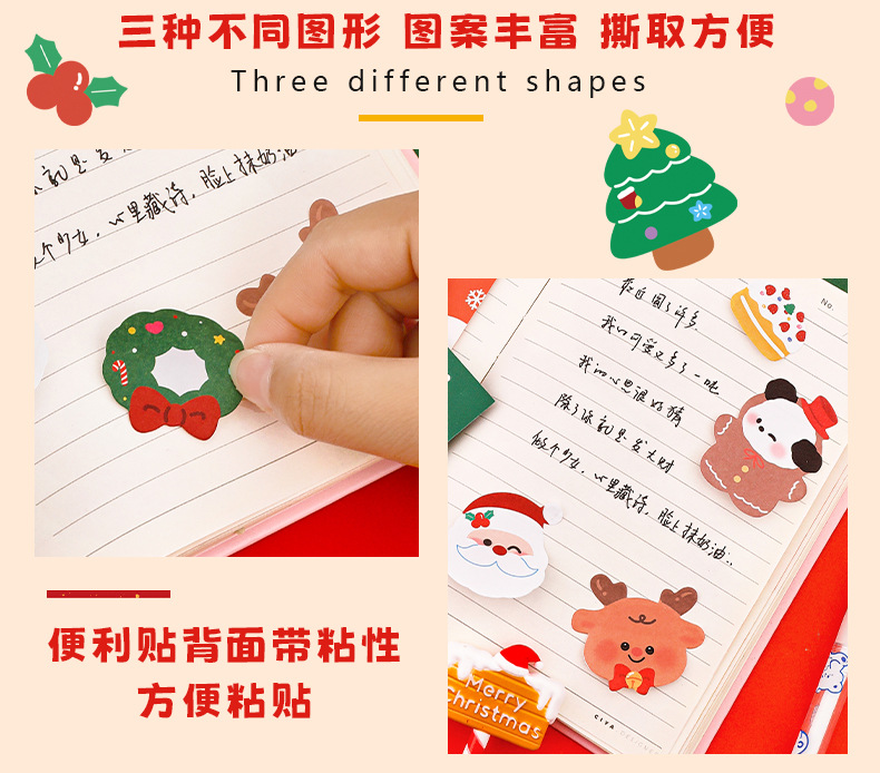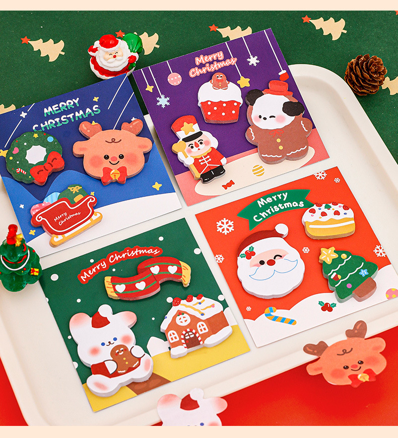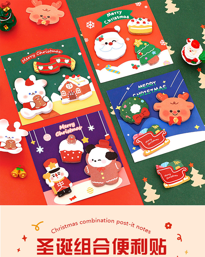 跨境卡通圣诞便利贴粘性记事留言便签纸n次贴学生文具圣诞节便签