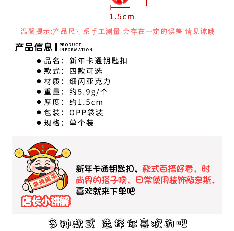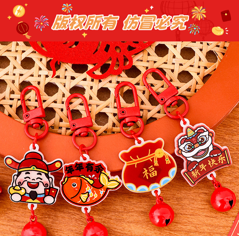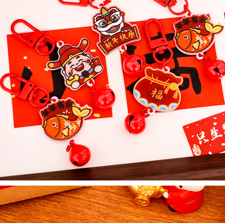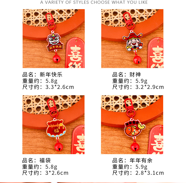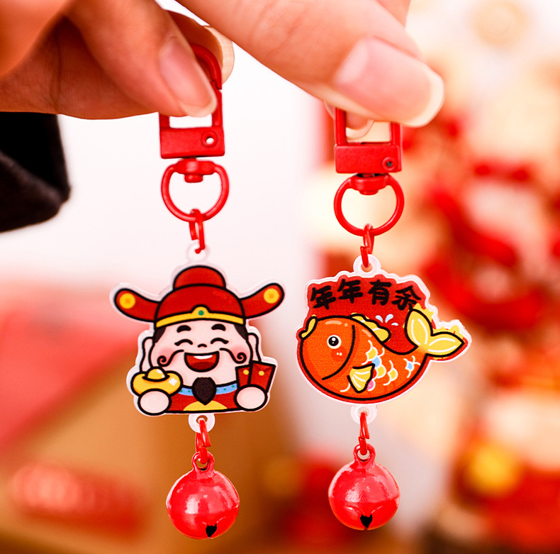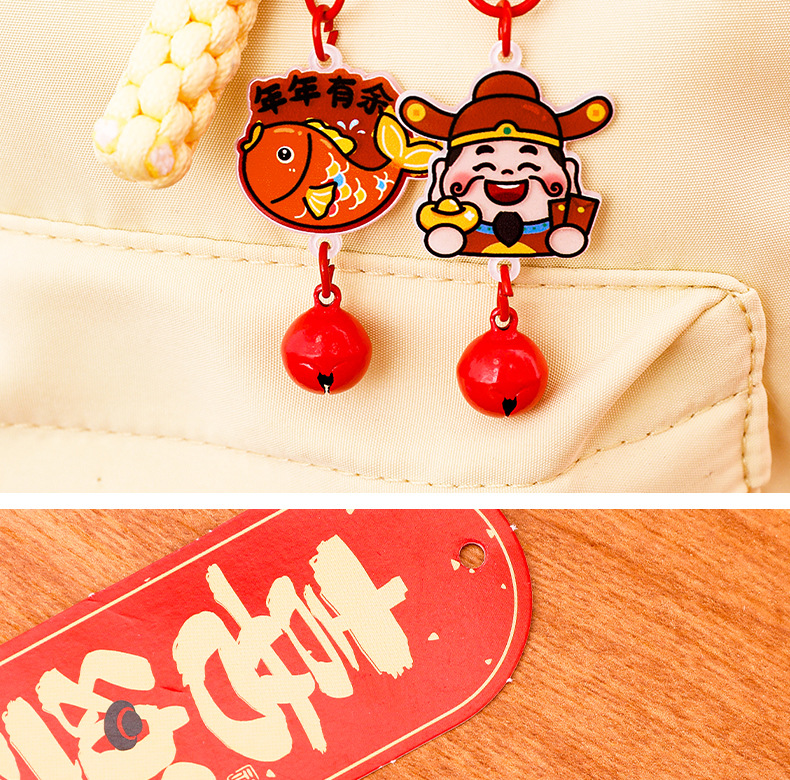 新年钥匙扣可爱财神亚克力铃铛挂饰春节小礼物学生新年小礼品挂件