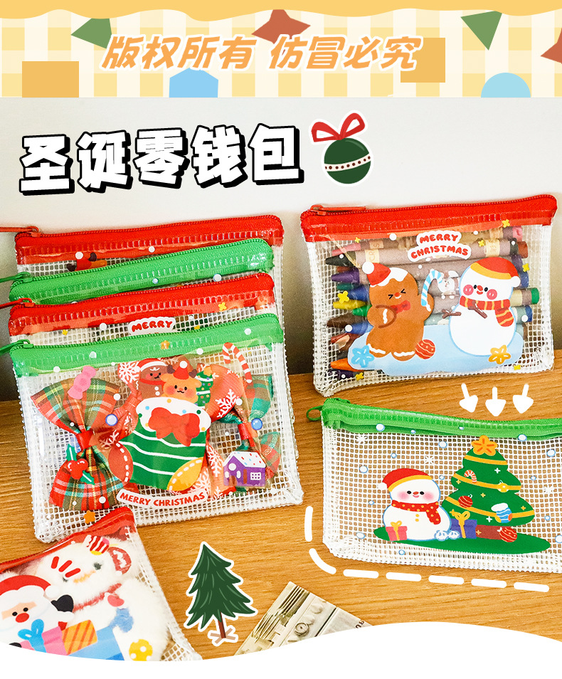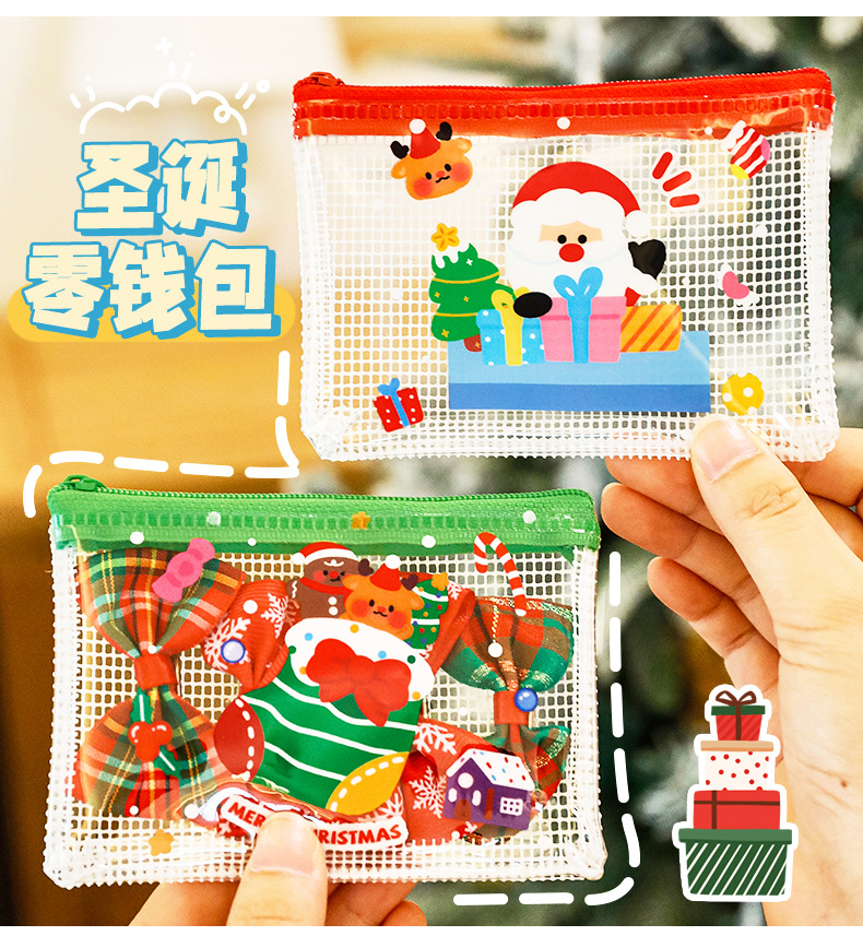 儿童圣诞零钱包pvc可爱透明便携收纳包学生圣诞节礼物礼品耳机包