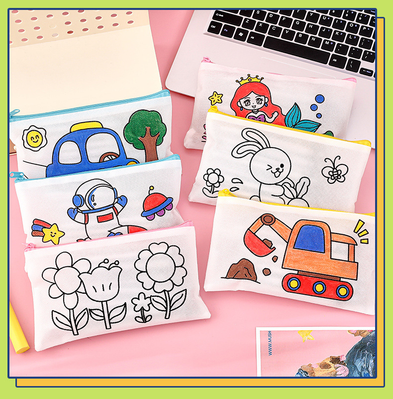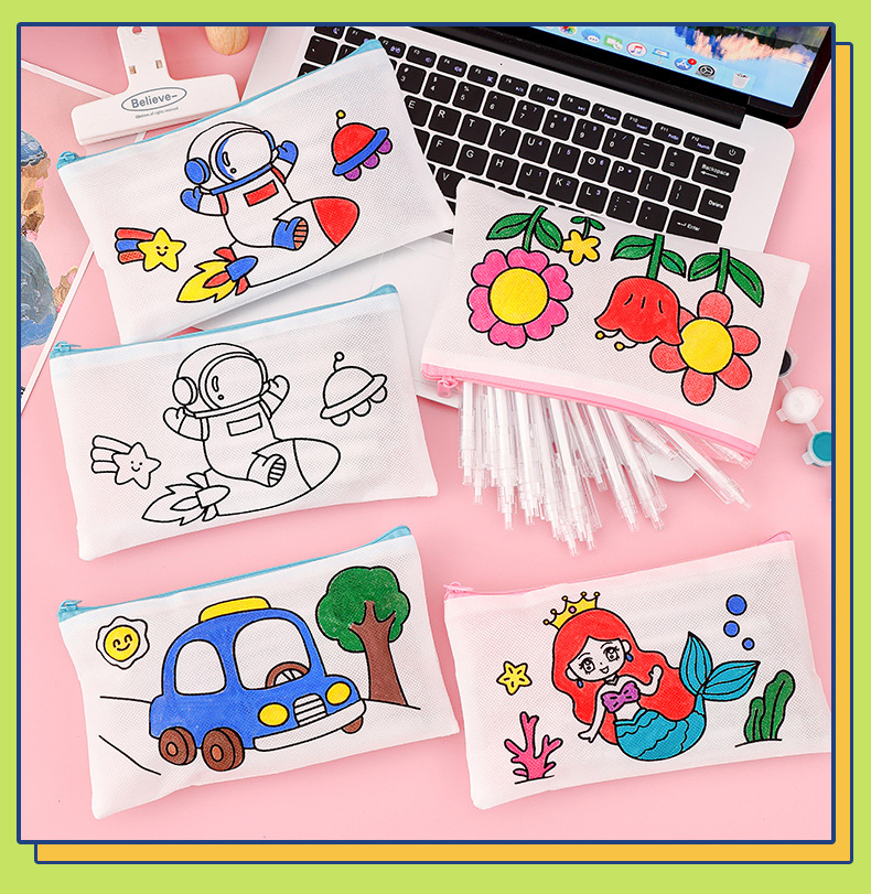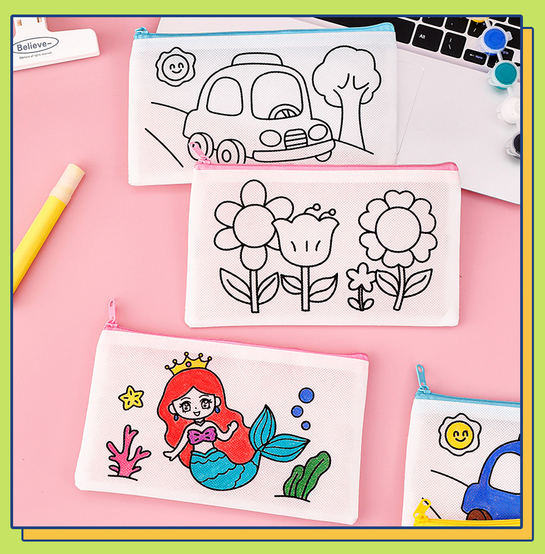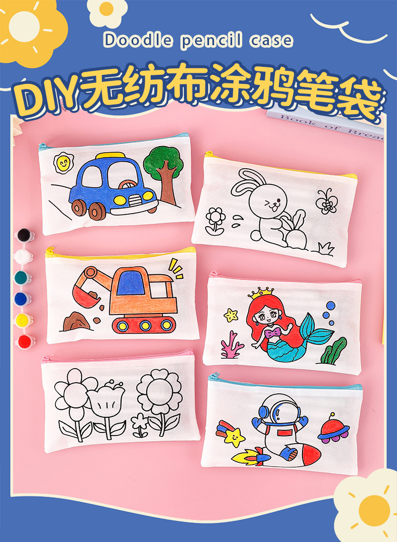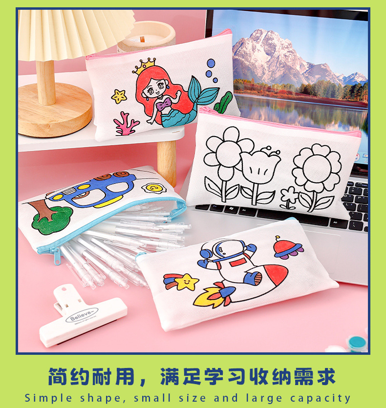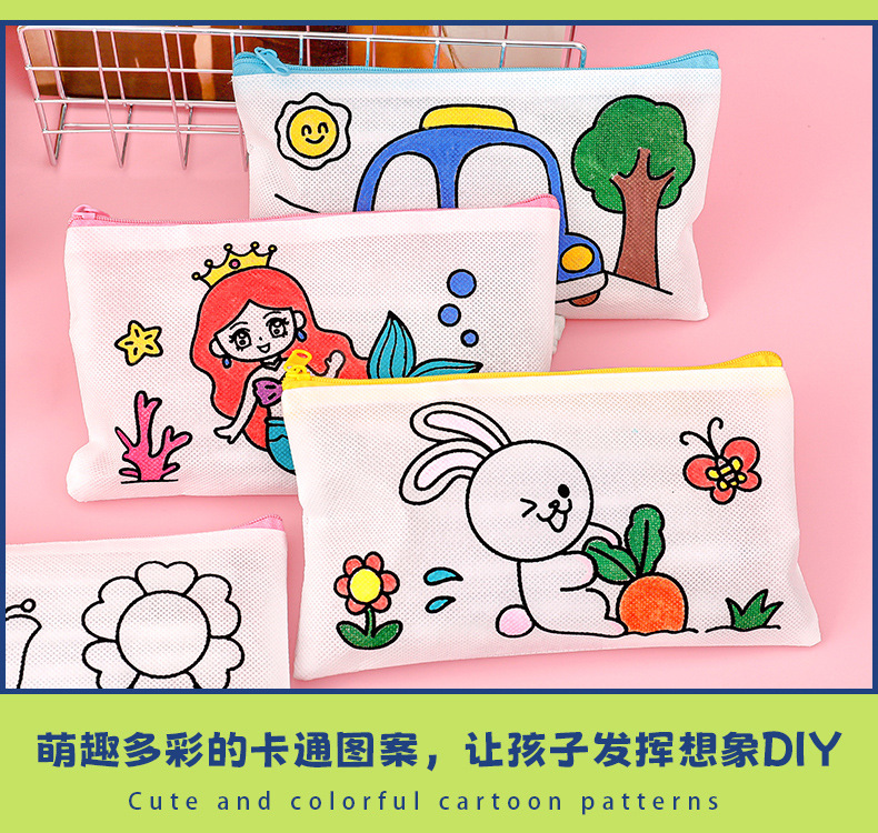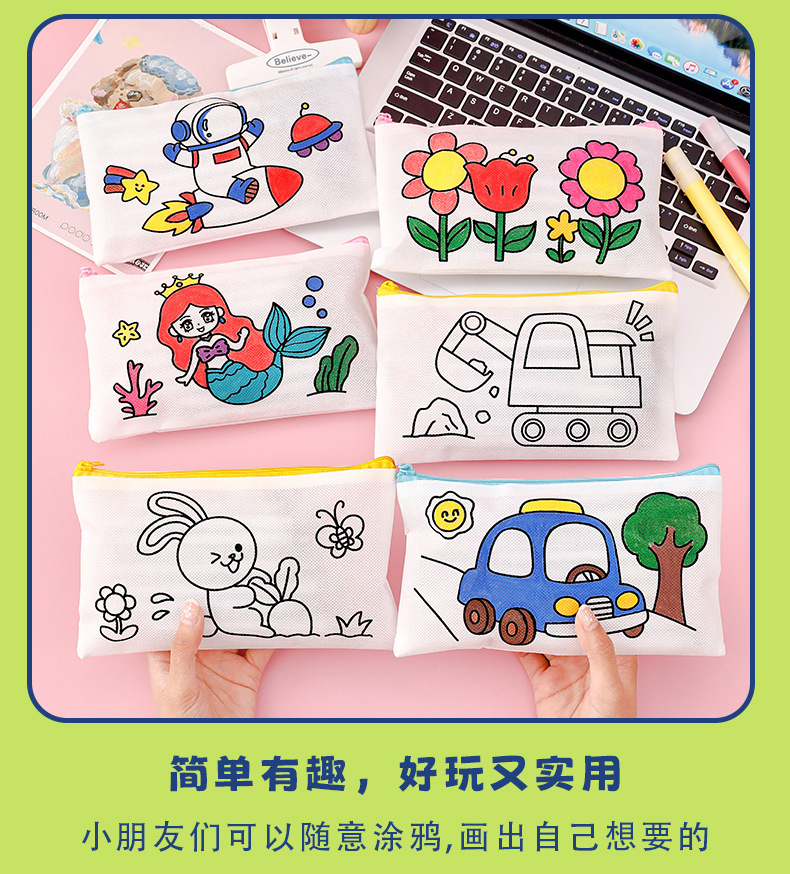 涂鸦笔袋 学生开学季小礼物卡通diy涂色无纺布文具袋儿童铅笔袋