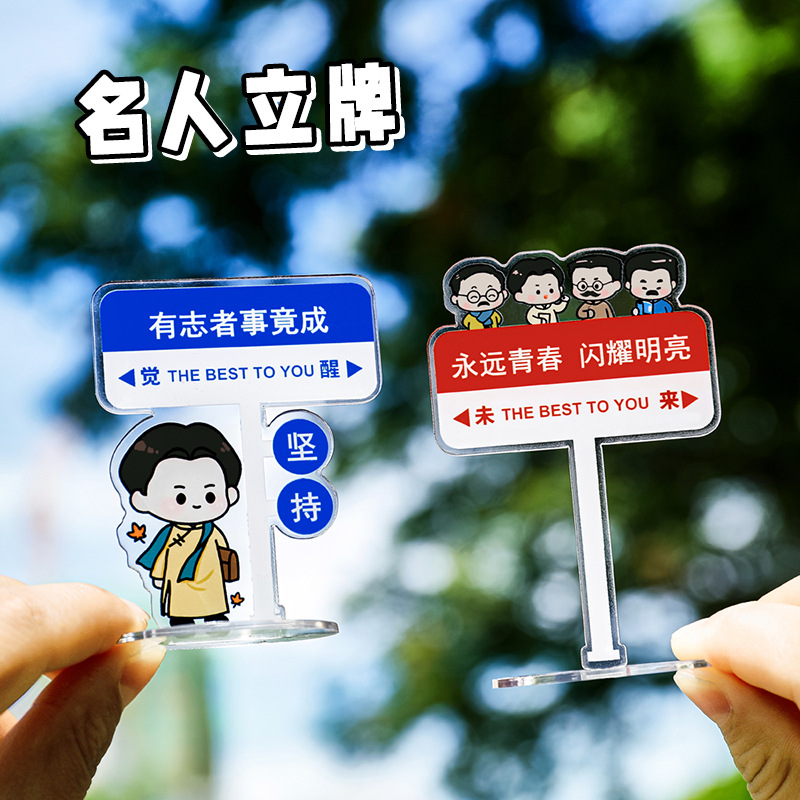 新青年立牌学生桌面摆件亚克力励志文字小路牌礼品创意名人小立牌