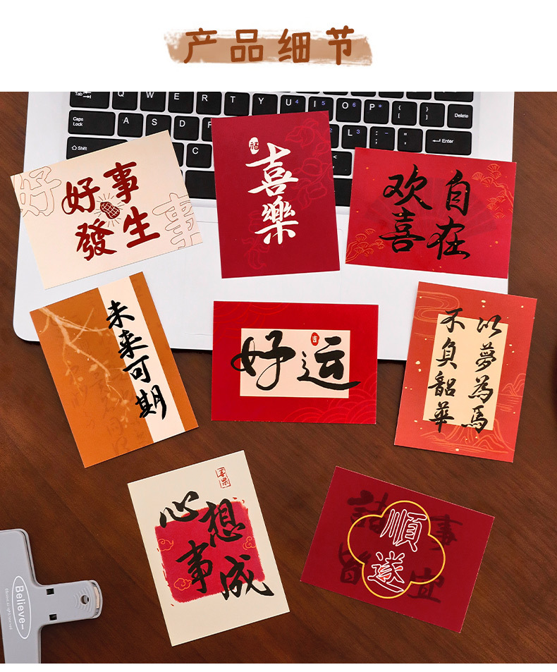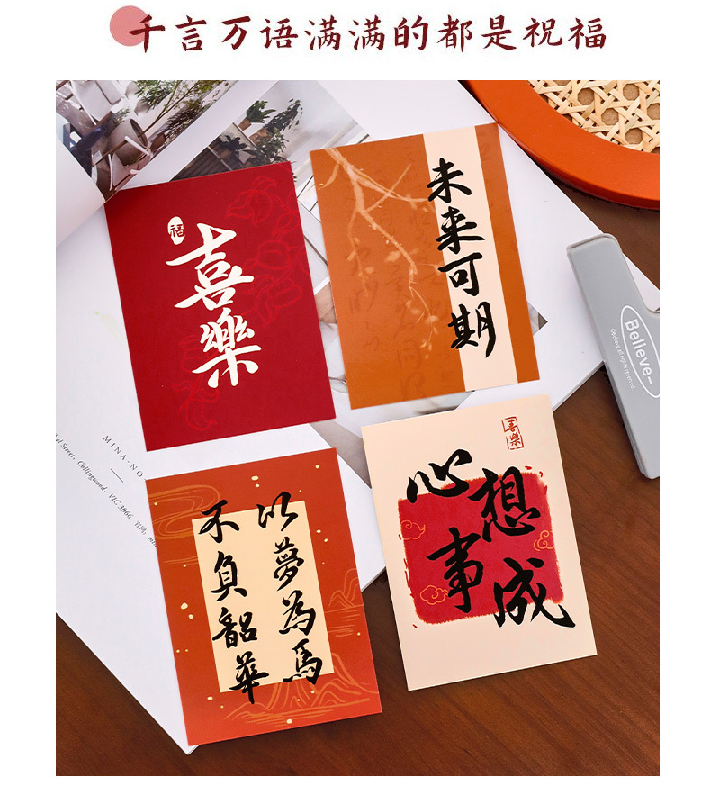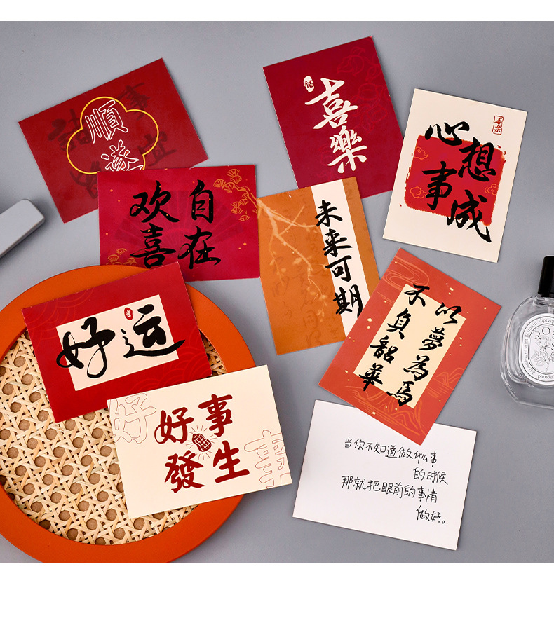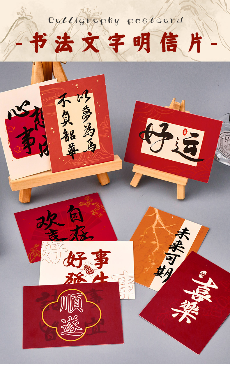 新年贺卡文字书法中国风美好祝福励志文字小卡片学生小礼品明信片