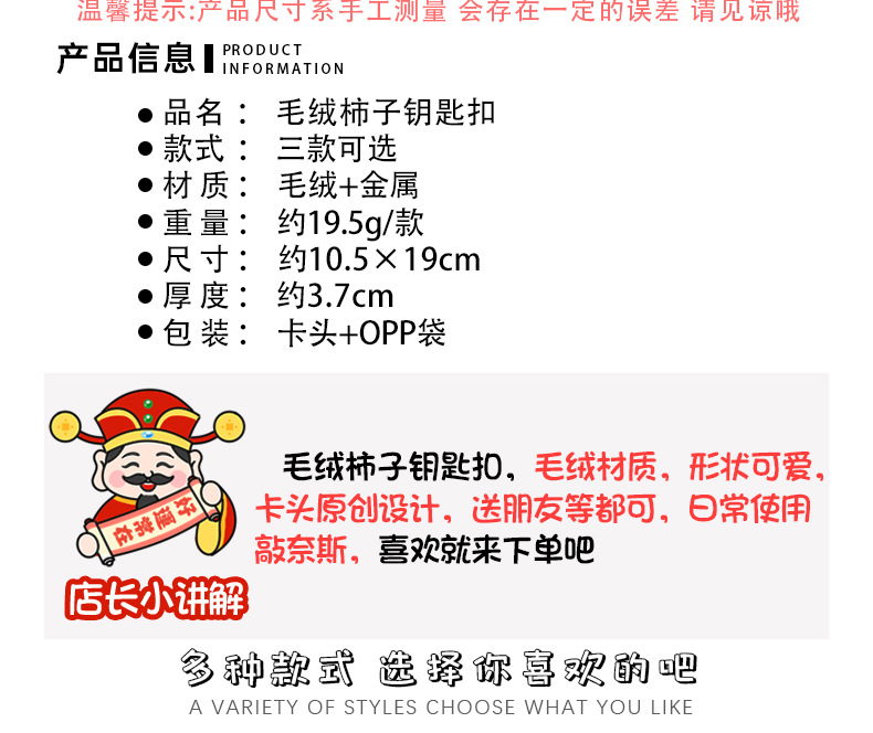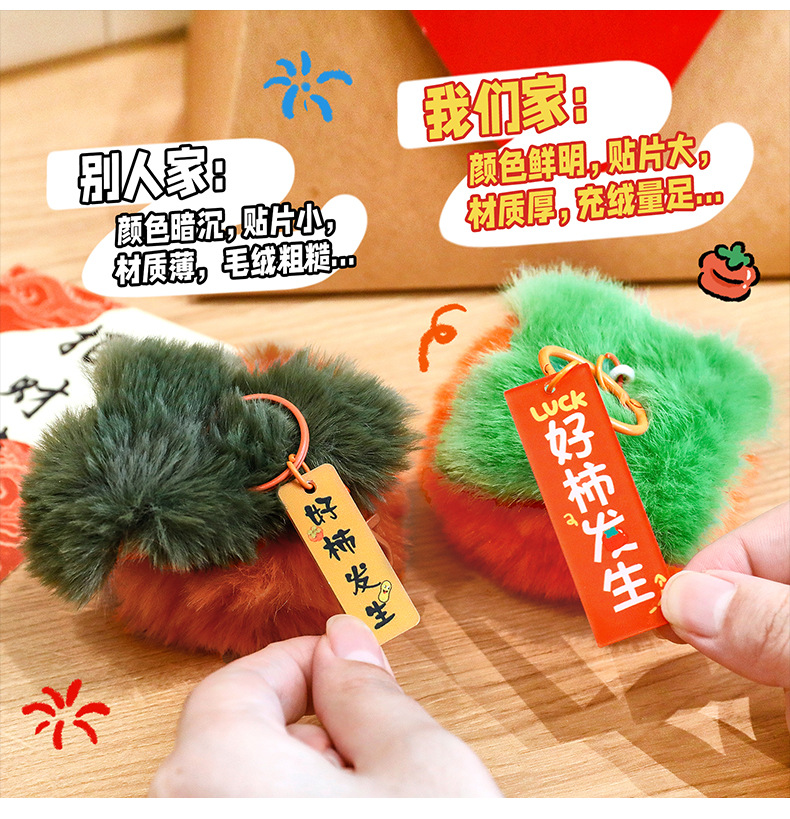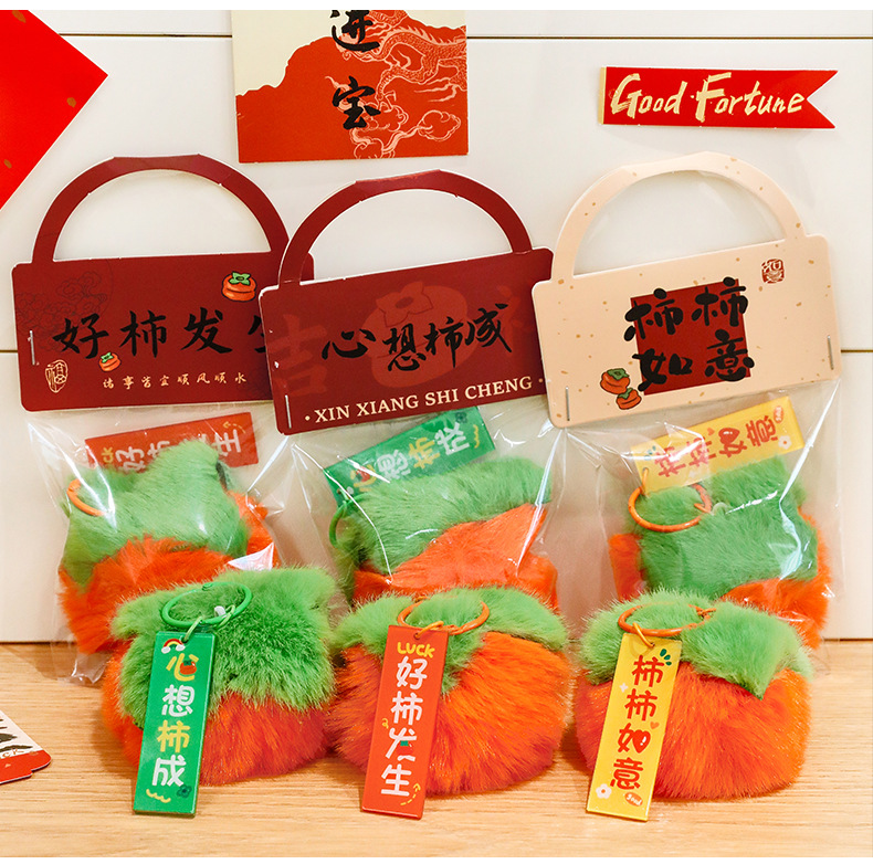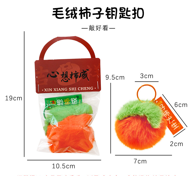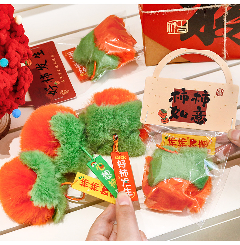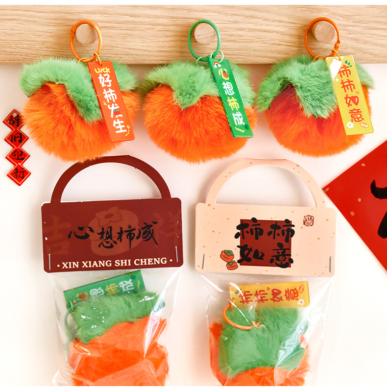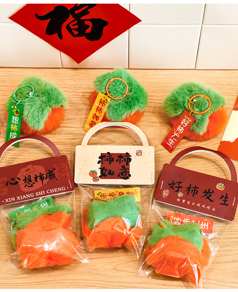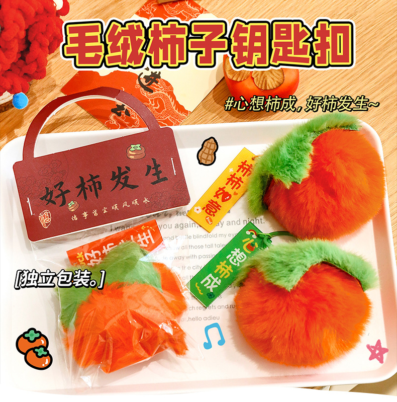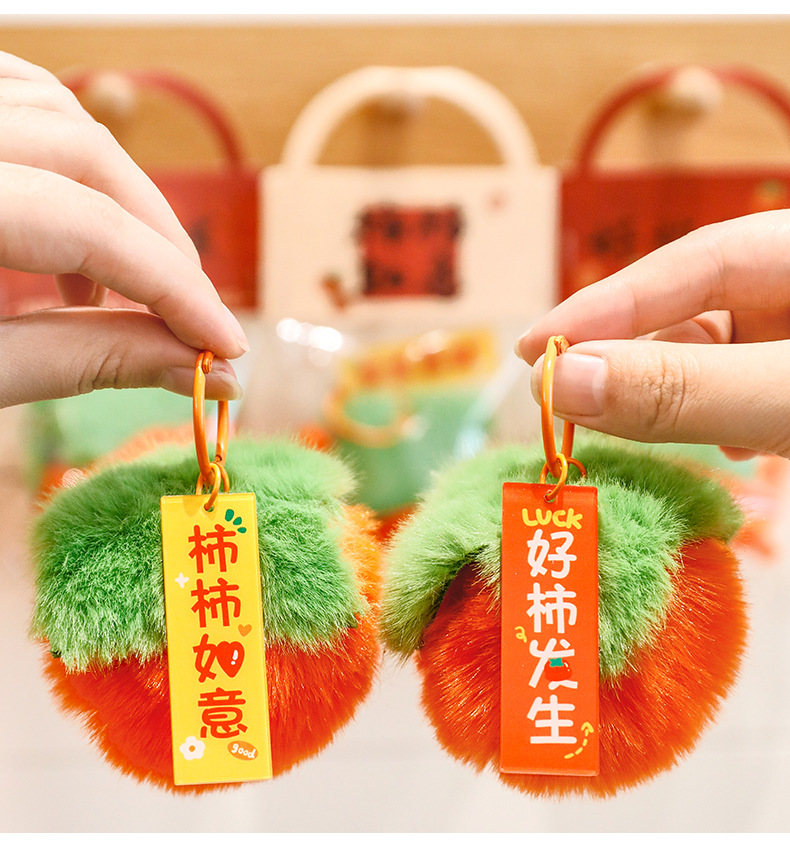 新年柿子钥匙扣创意毛绒文字挂饰包包装饰品学生春节过年礼品挂件