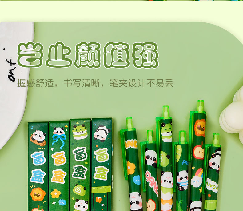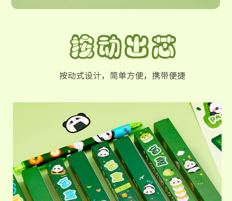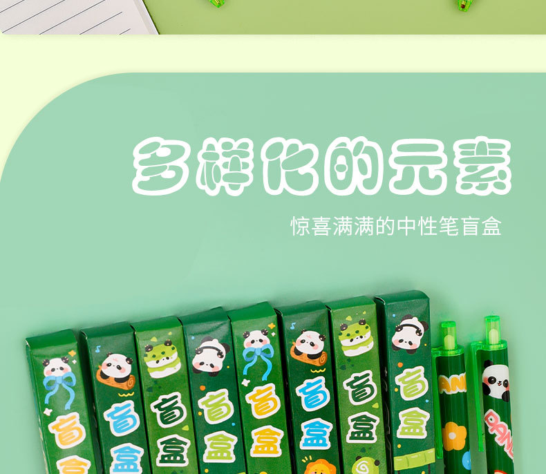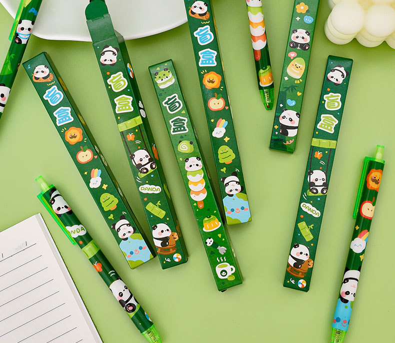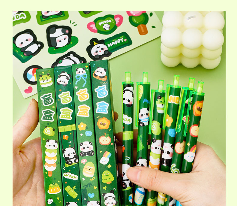 卡通熊猫盲盒笔高颜值学生小礼品可爱文具用品批发文具套装中性笔