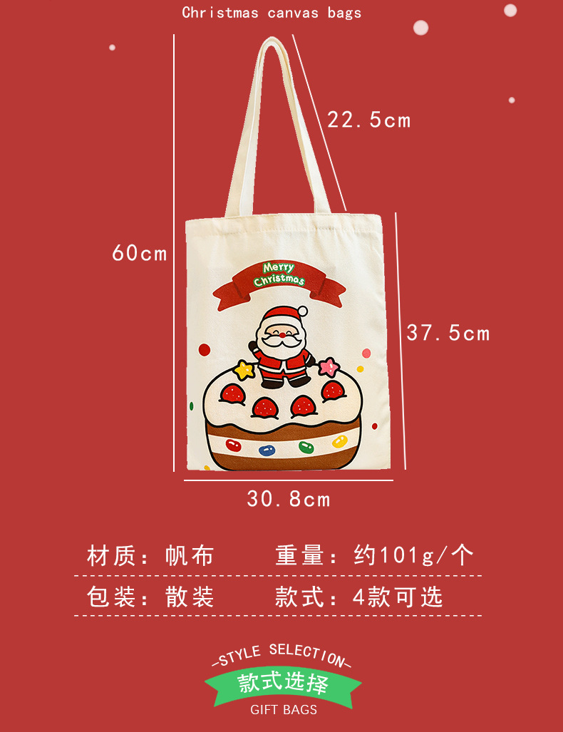 圣诞节帆布袋大容量圣诞老人节日礼物袋子学生圣诞节礼品包装袋