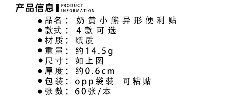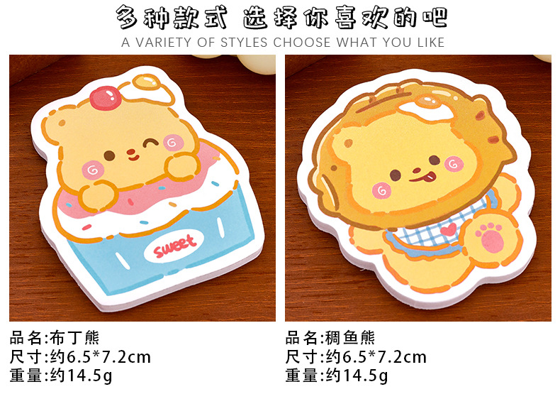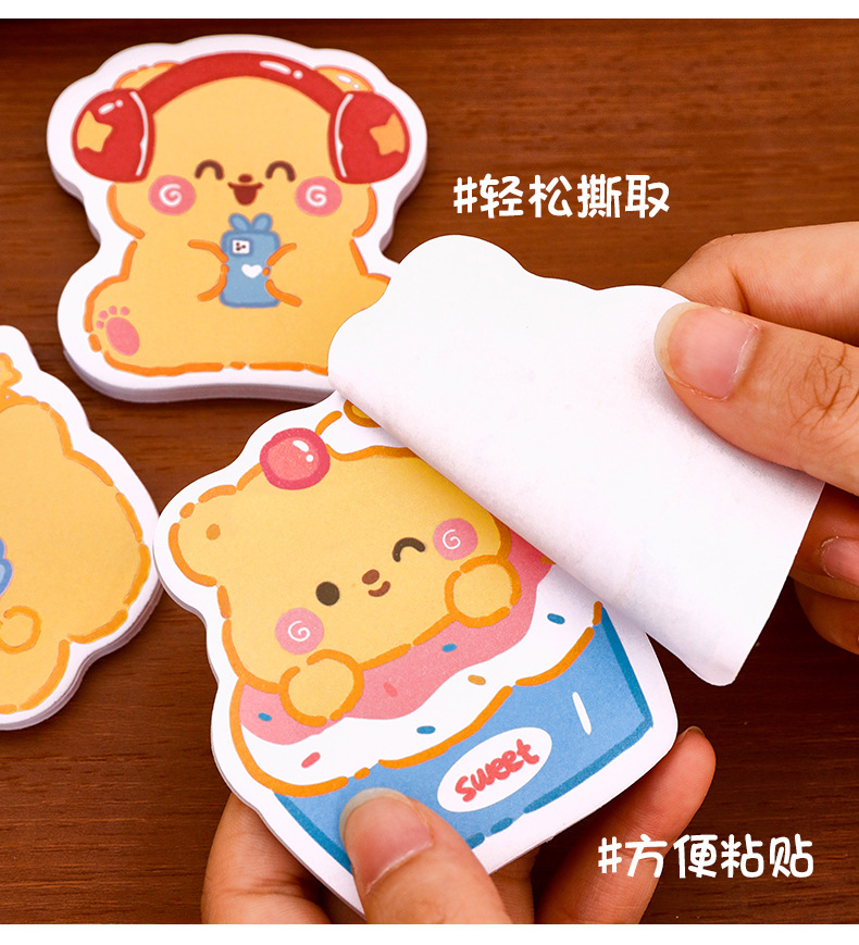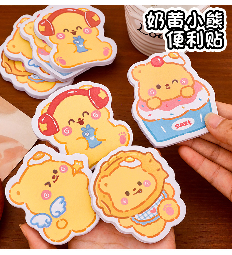 奶黄小熊便利贴学生粘性n次贴异型便签本高颜值可爱卡通文具便签