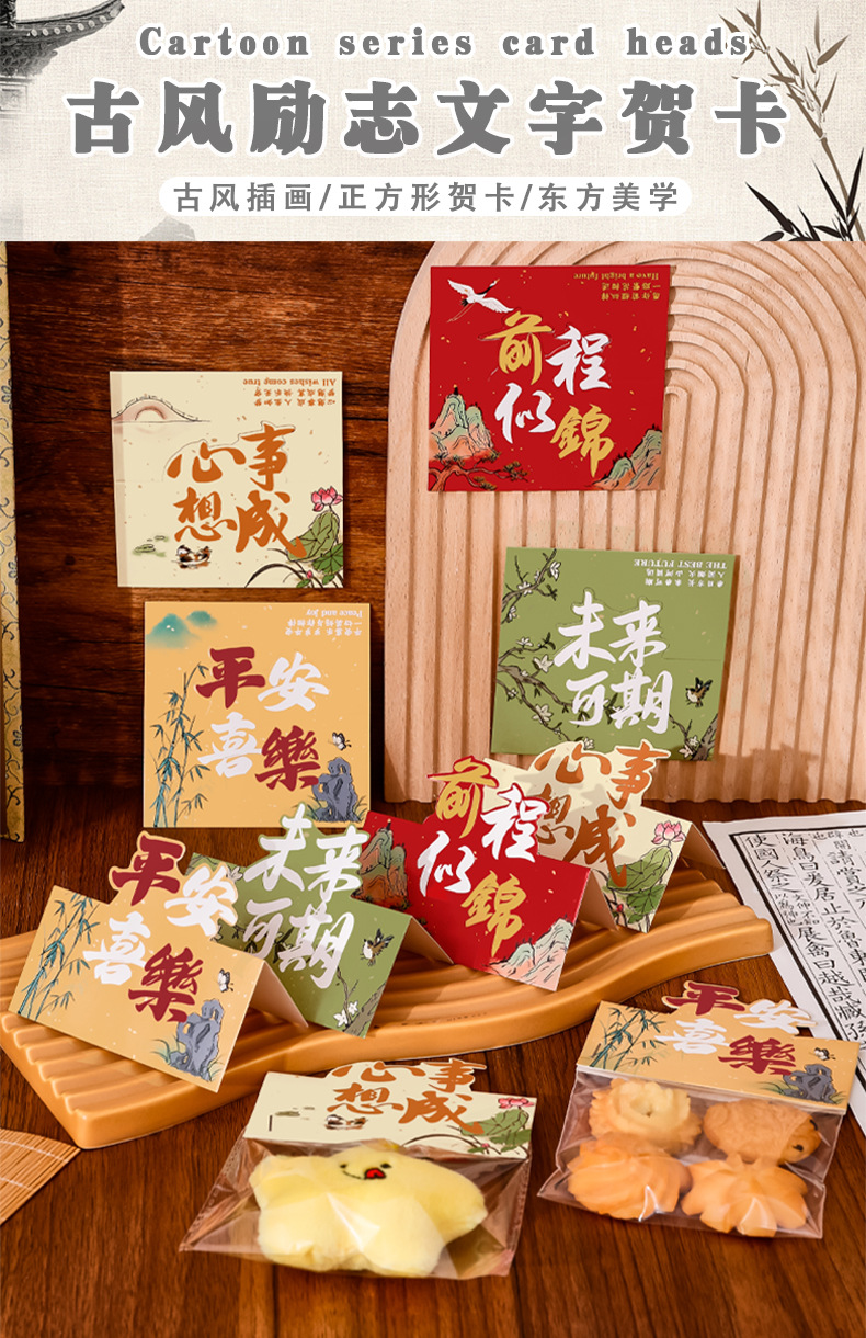 古风文字卡头 中国风异型对折标签卡片包装背卡礼品饰品吸塑卡头