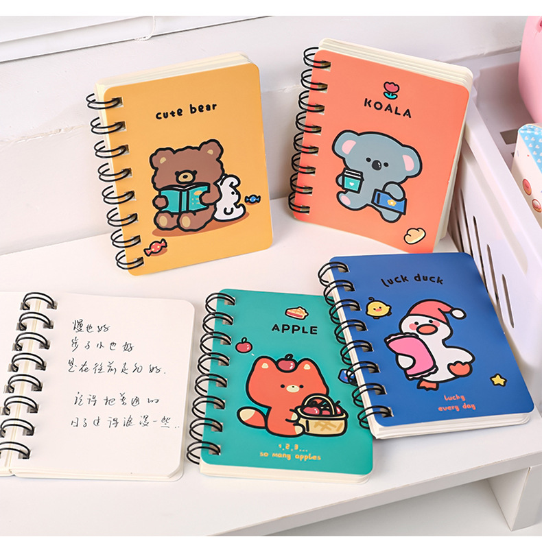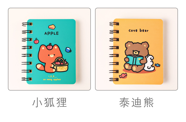 a7线圈本卡通动物便携日记本可爱文具笔记本子学生侧翻记事口袋本