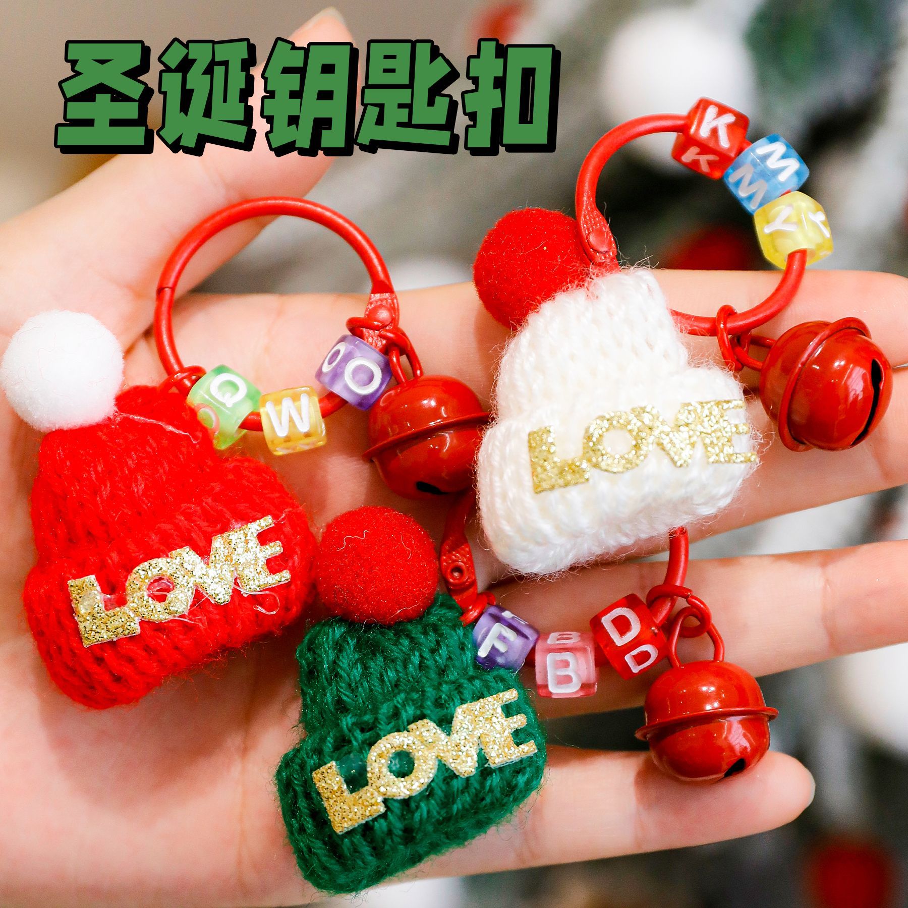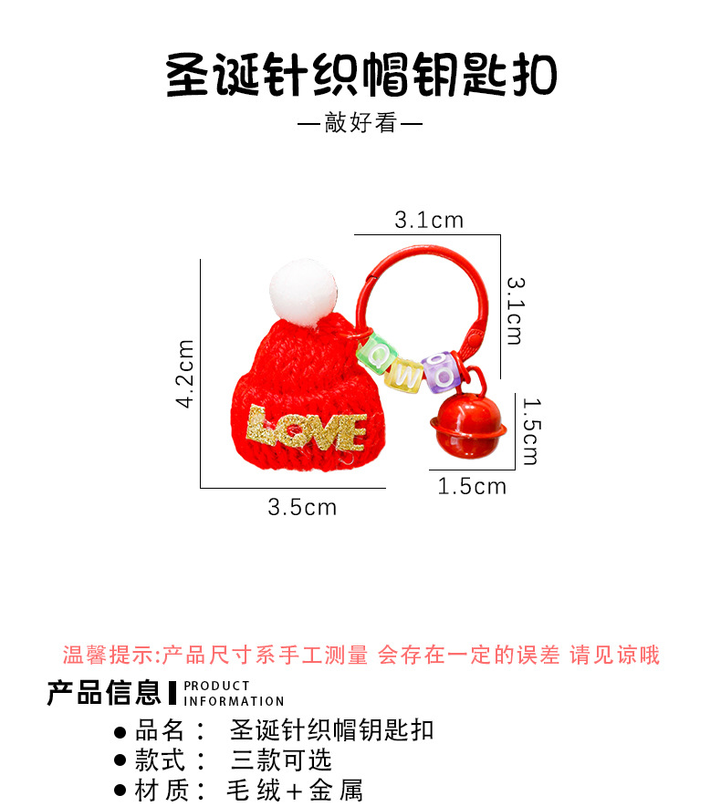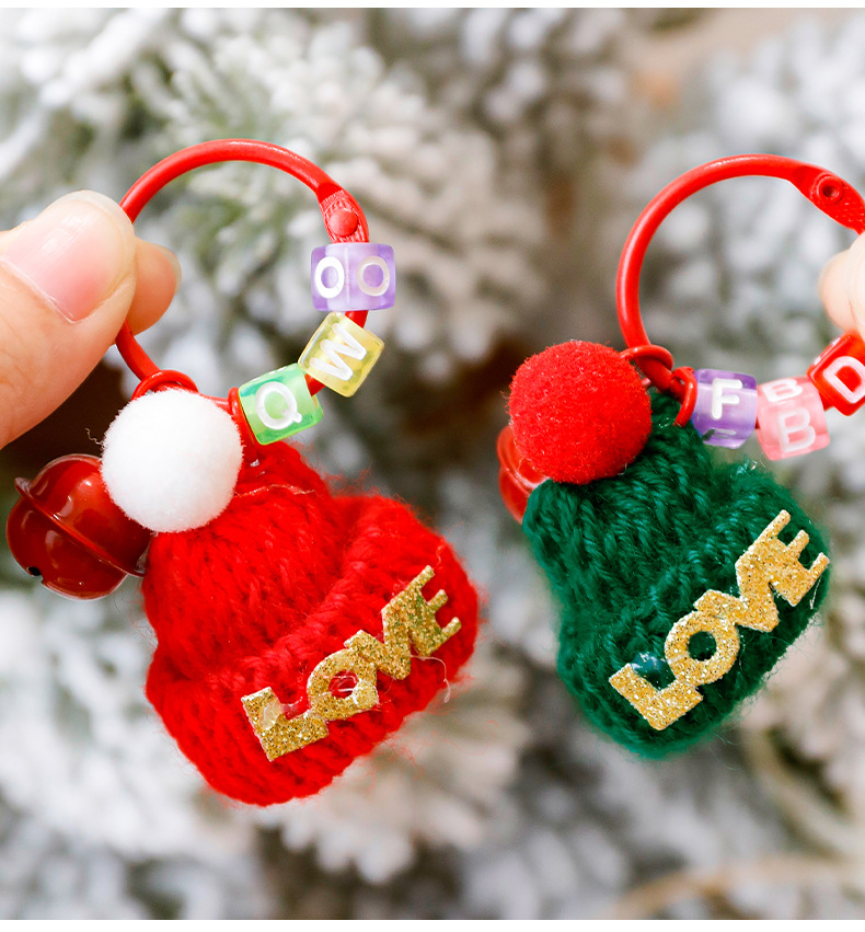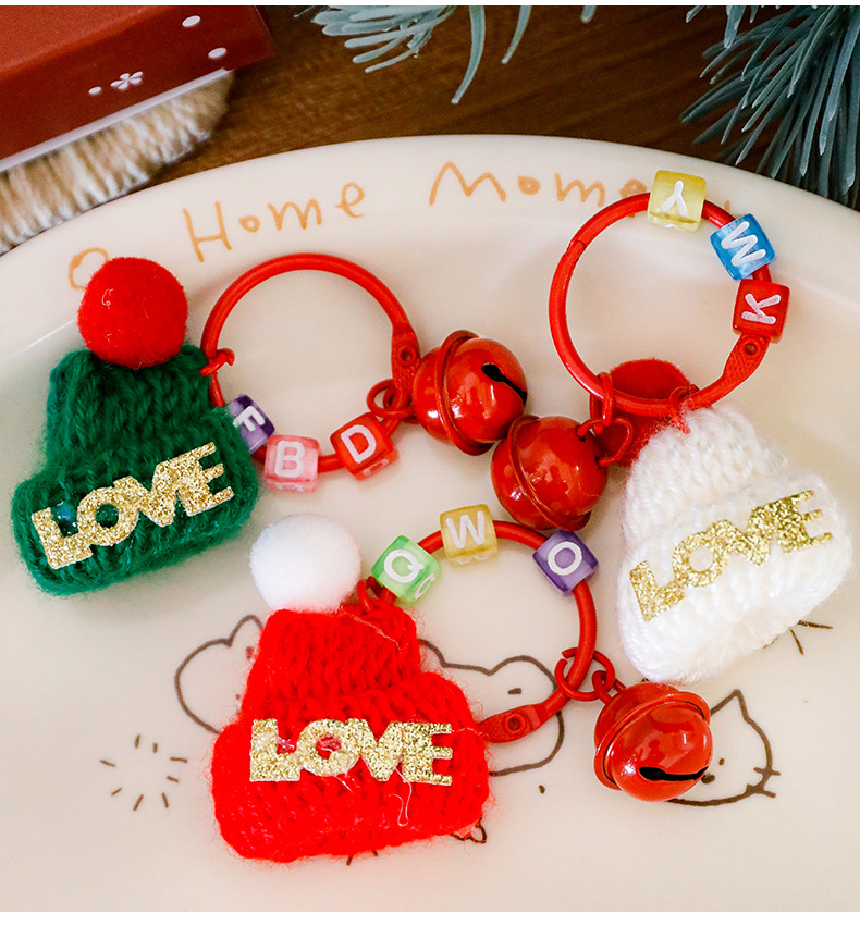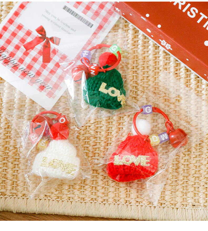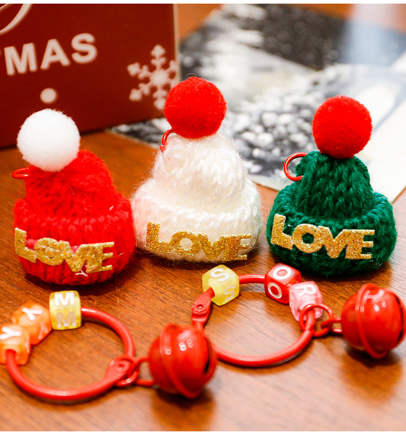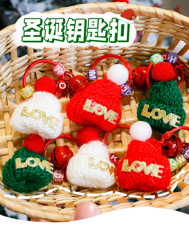 跨境圣诞帽钥匙扣可爱小帽子铃铛钥匙圈学生小礼物圣诞小礼品挂件