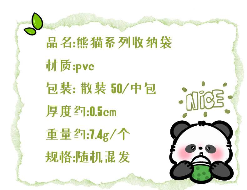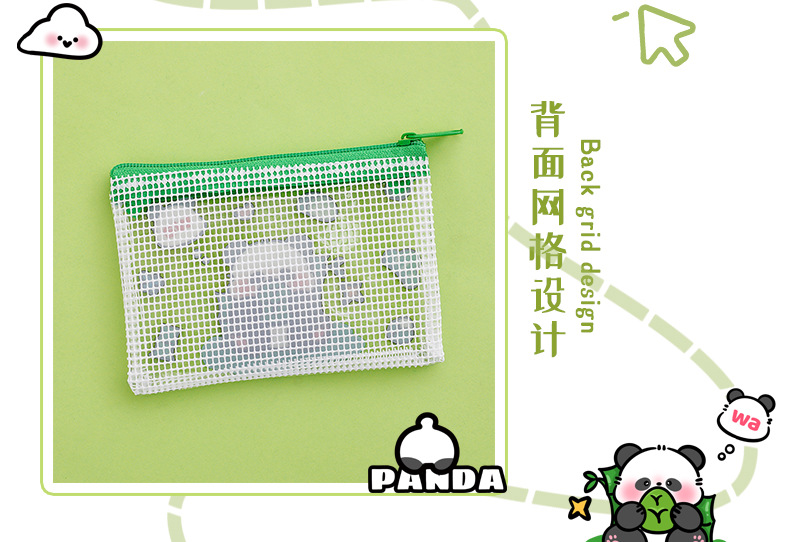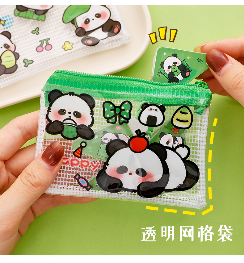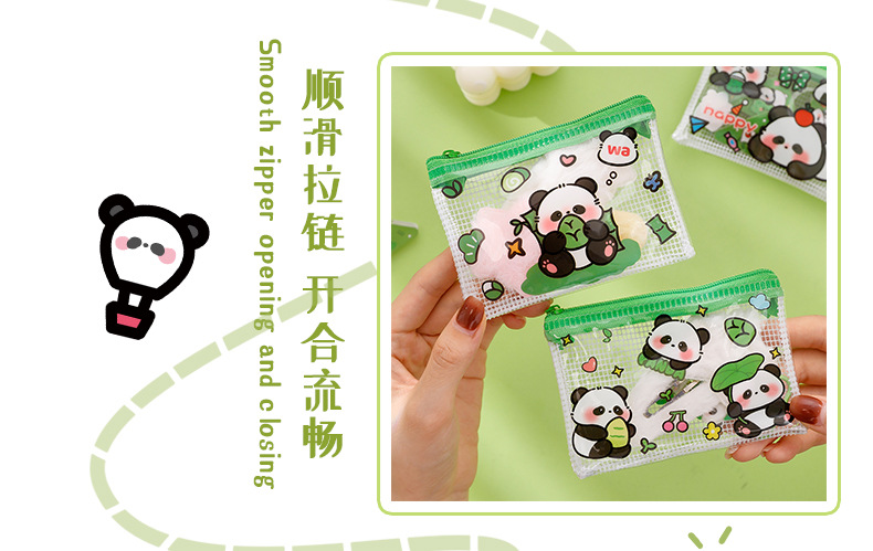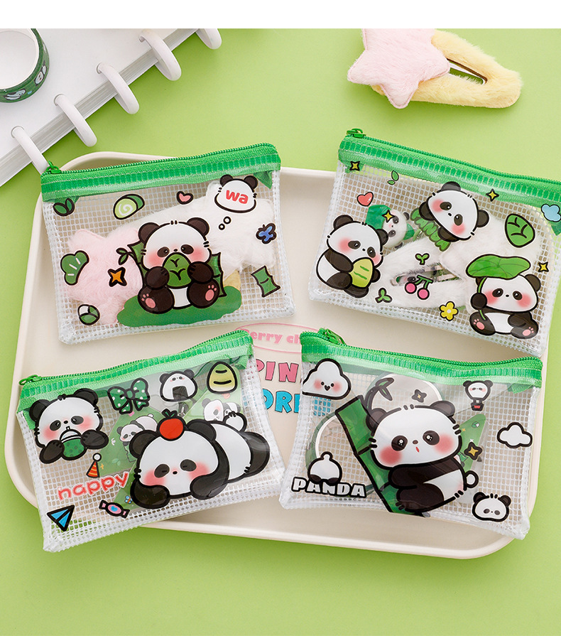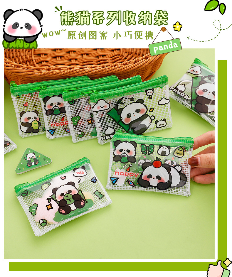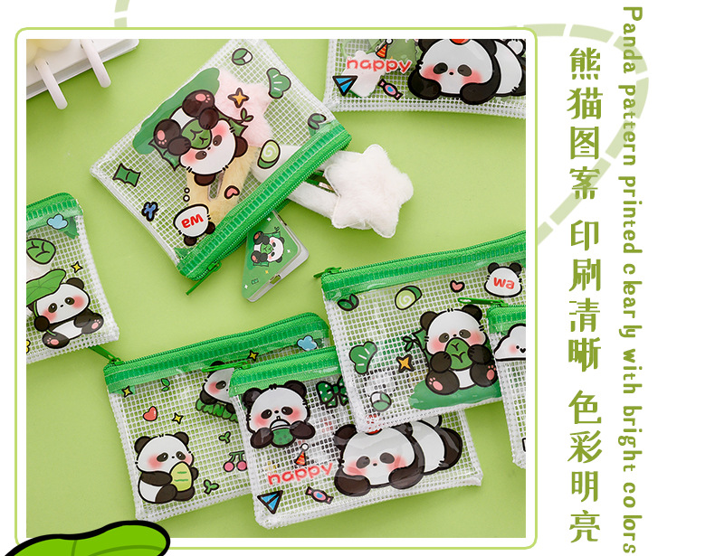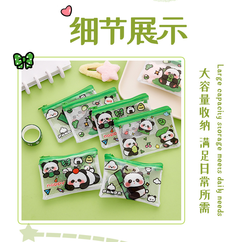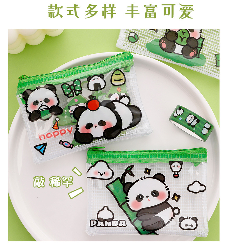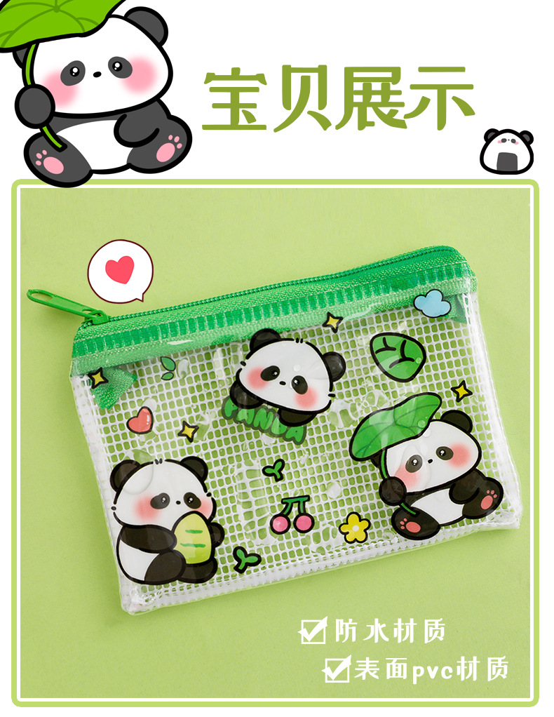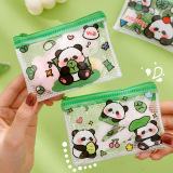 熊猫零钱包可爱卡通pvc透明收纳袋学生高颜值便携拉链零钱耳机包