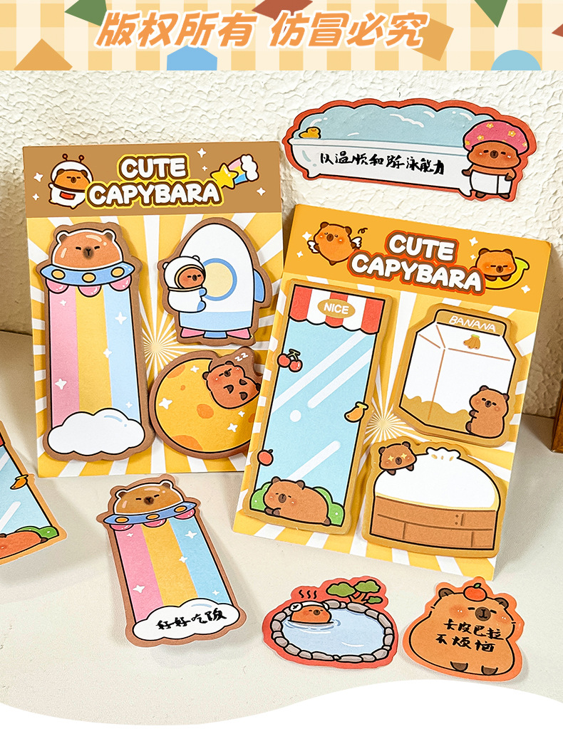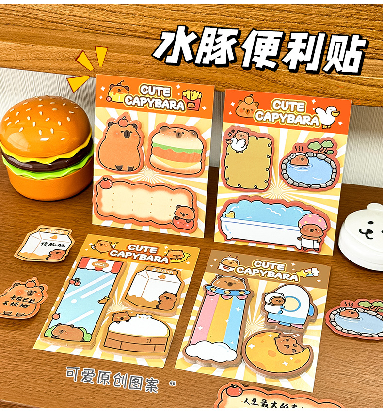 跨境可爱卡皮巴拉便利贴高颜值卡通留言n次贴文具礼品水豚便签纸