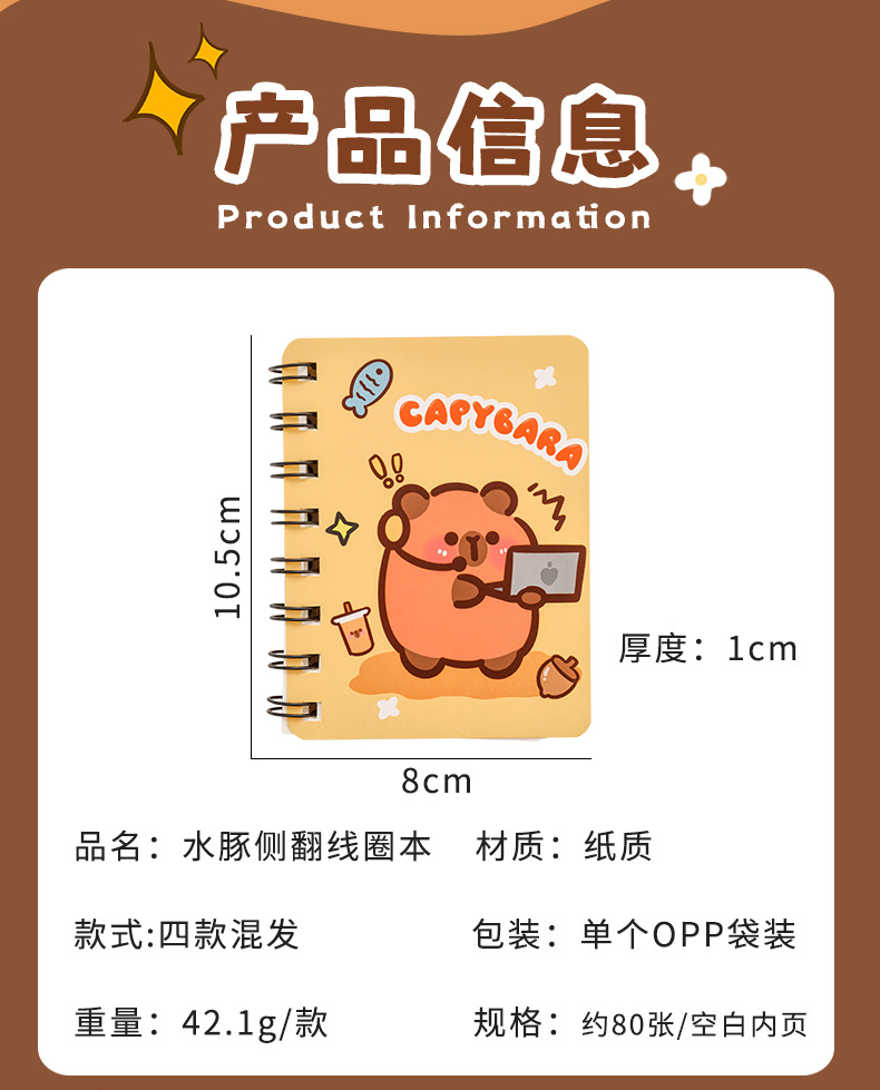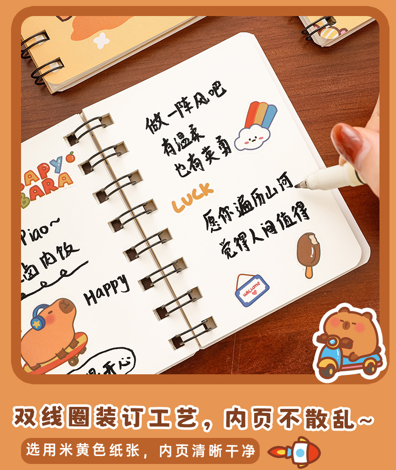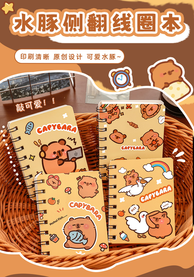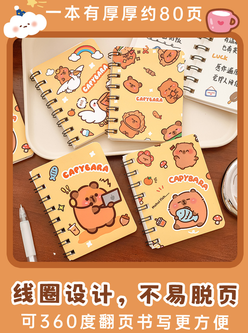 卡皮巴拉线圈本高颜值可爱水豚便携口袋记事本文具a7侧翻笔记本