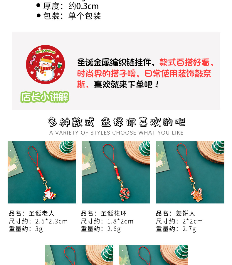 圣诞编织钥匙扣手机挂绳卡通吊坠圣诞老人装饰品圣诞节小礼品挂件