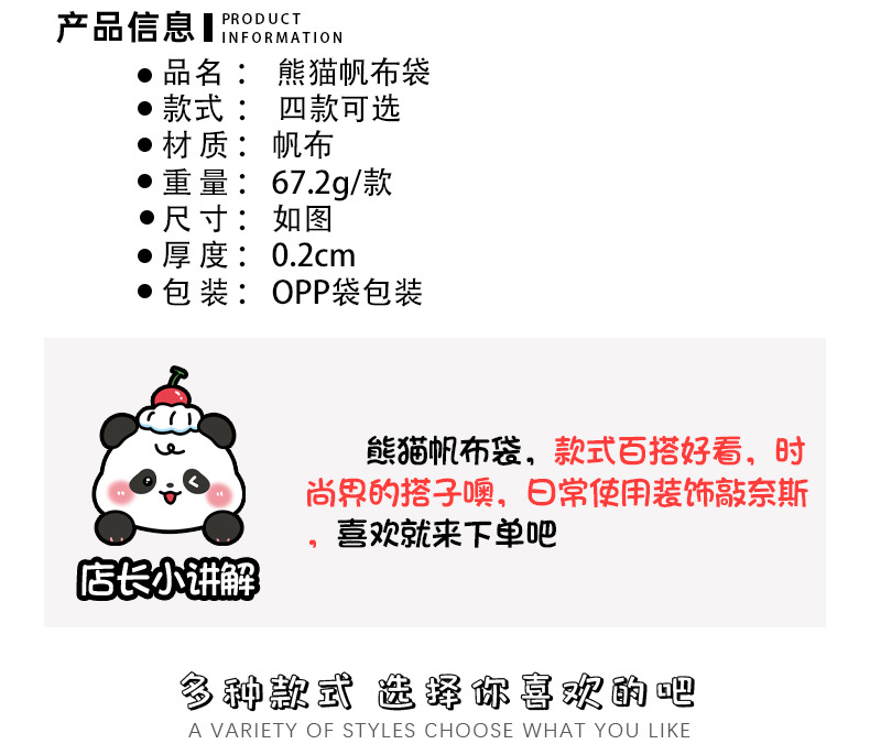 熊猫帆布袋学生文具套装伴手礼包装袋子儿童高颜值卡通可爱礼品袋