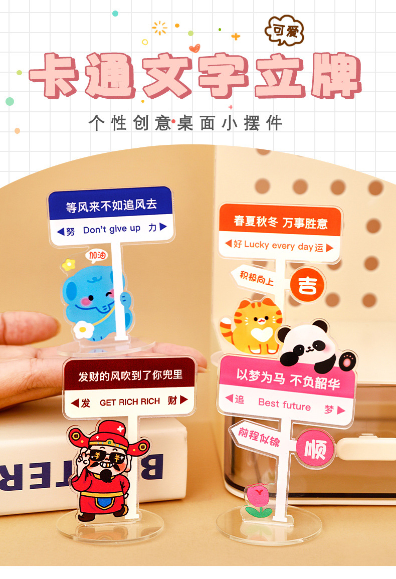 创意文字立牌学生亚克力桌面路牌打工人办公装饰小摆件可爱小立牌