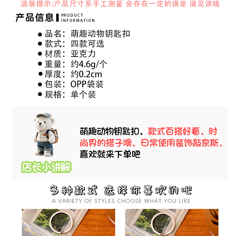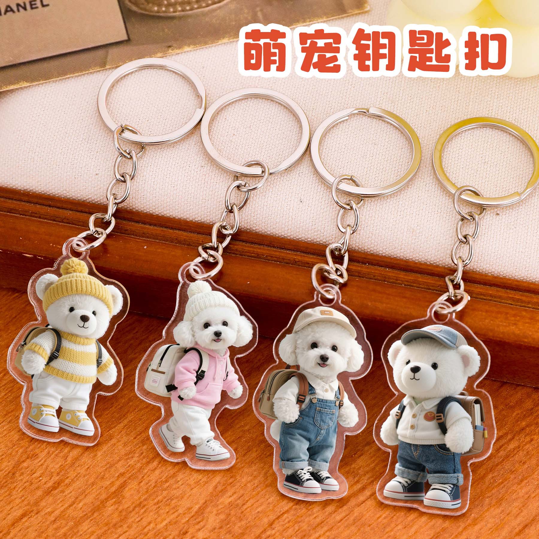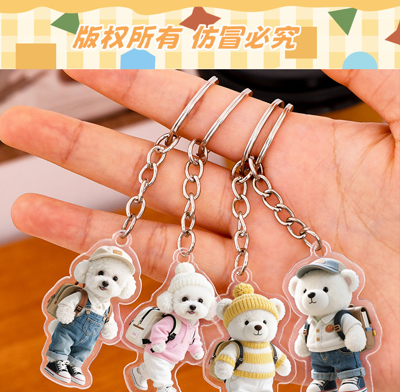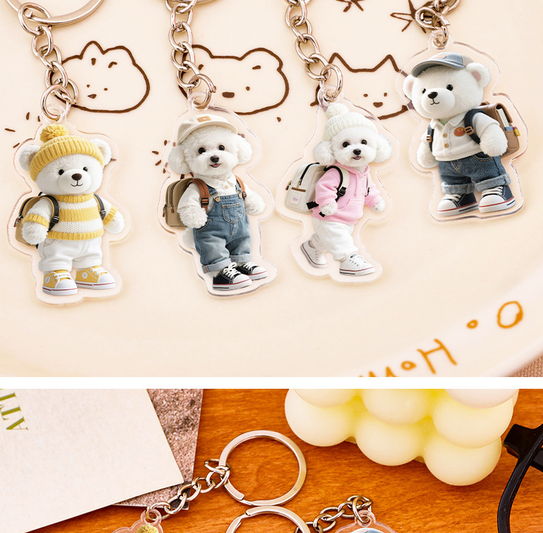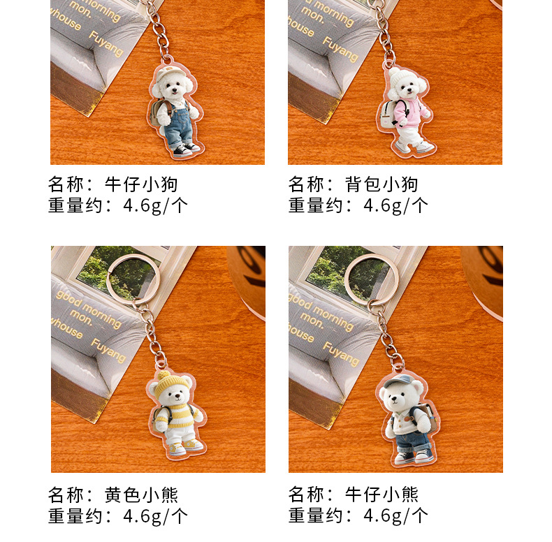 卡通小狗钥匙扣萌宠动物小熊装饰挂饰创意狗狗钥匙圈亚克力挂件