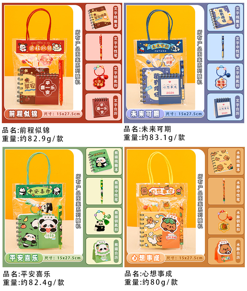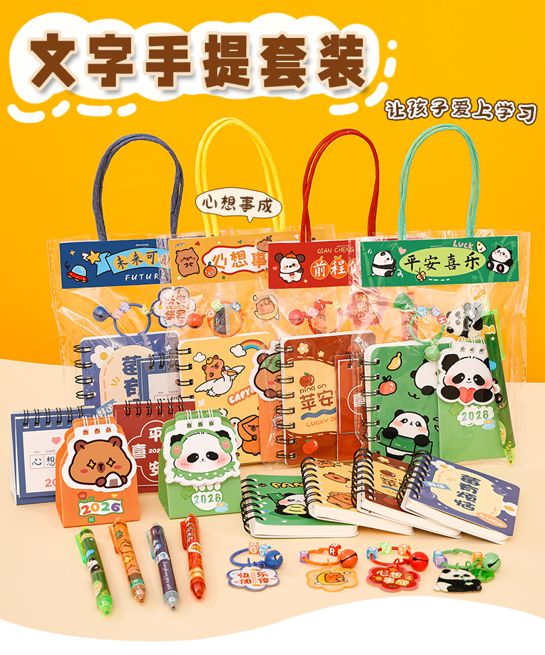 新年文具套装小学生奖励礼物全班学习用品励志熊猫水豚文具小礼品