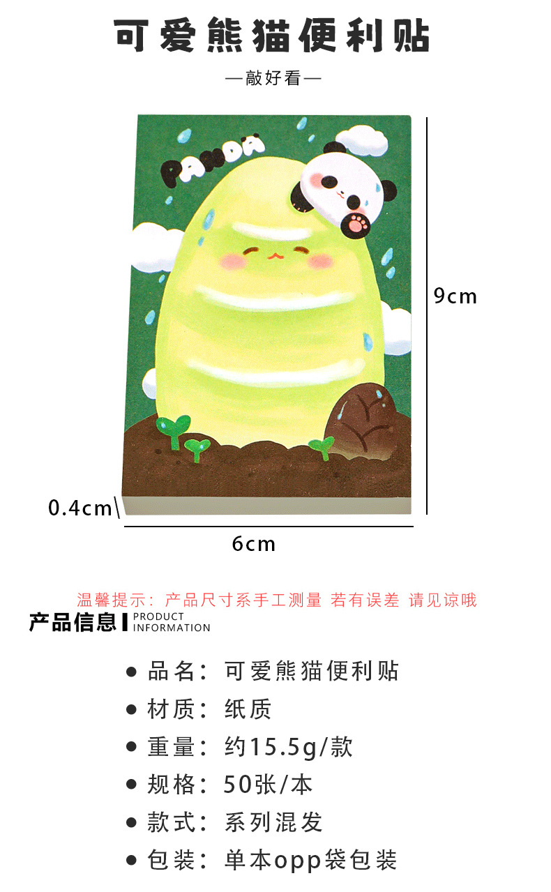 可爱熊猫便利贴高颜值卡通小学生奖励文具学习用品留言记事便签纸