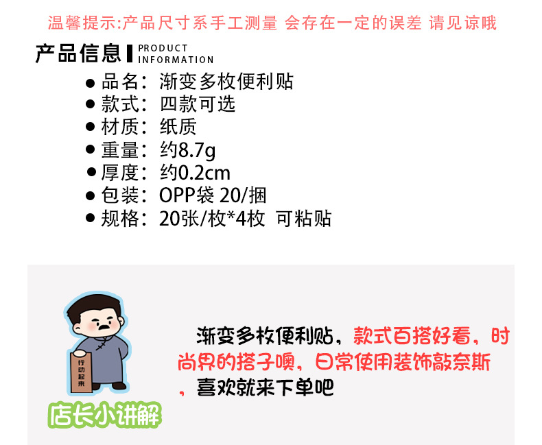 创意渐变色便利贴可撕粘性n次贴便签纸记事贴学生文具小礼品便签