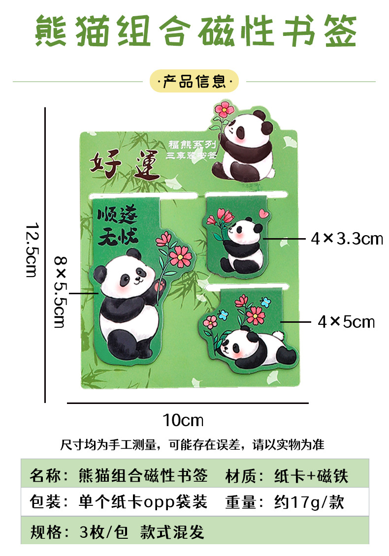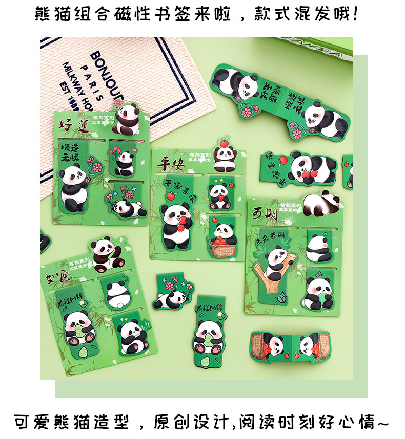 熊猫磁性书签可爱纪念套装高颜值阅读书页夹学生文具礼品磁铁书签