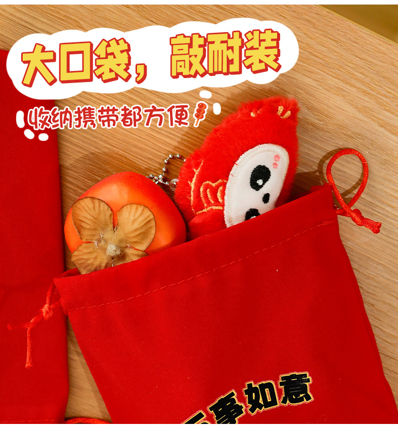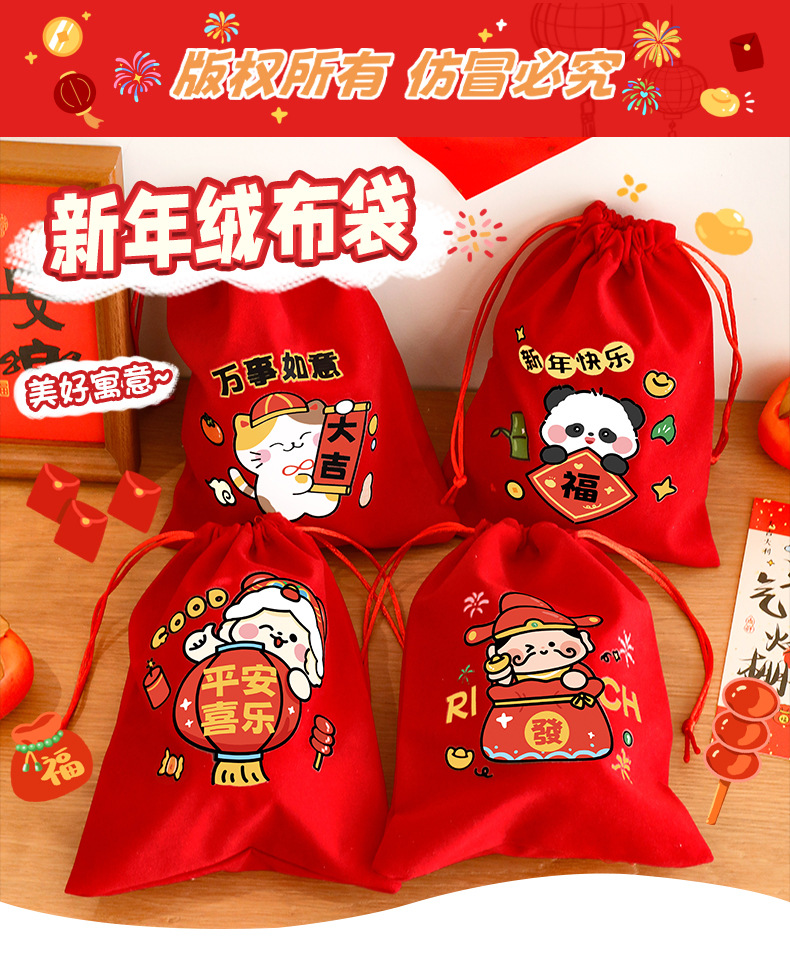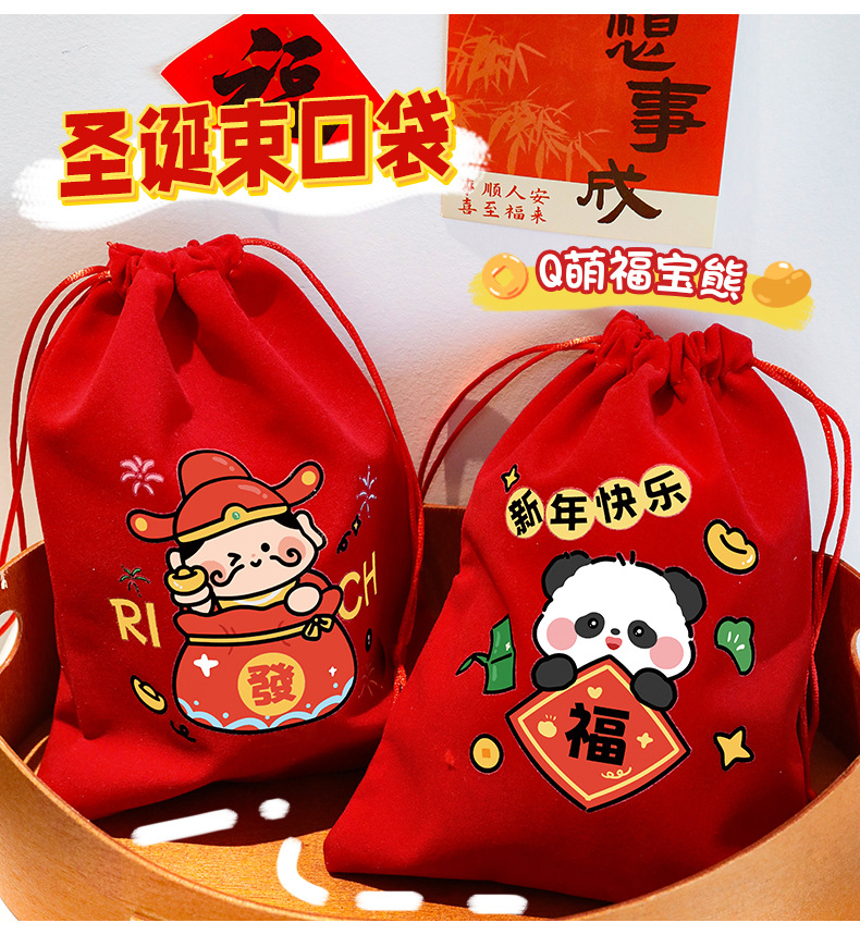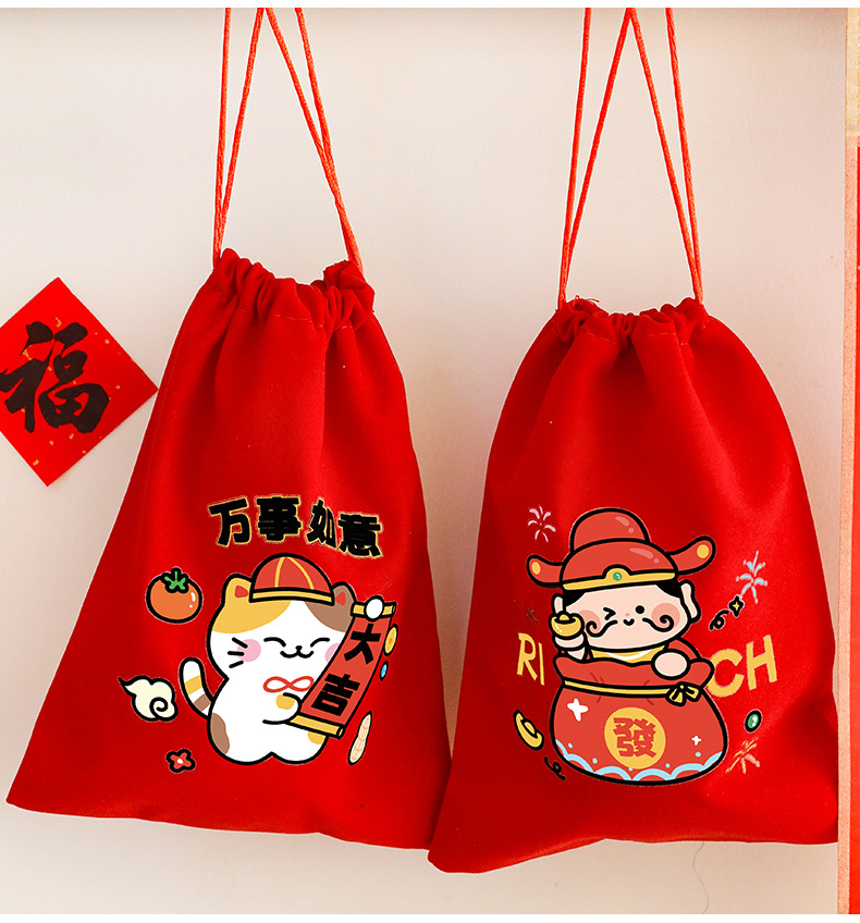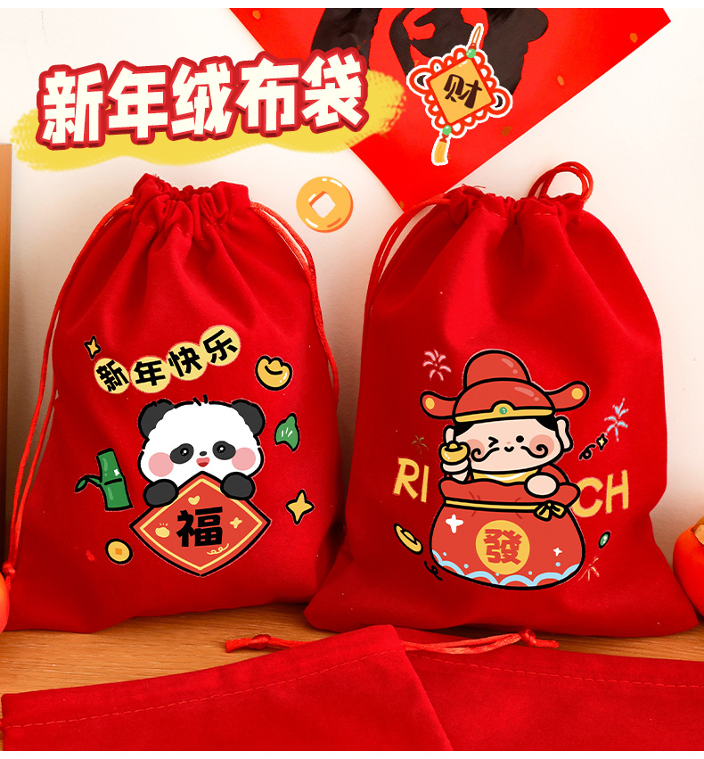 新年束口袋抽绳拉绳绒布收纳袋春节过年礼物包装袋学生新年小礼品