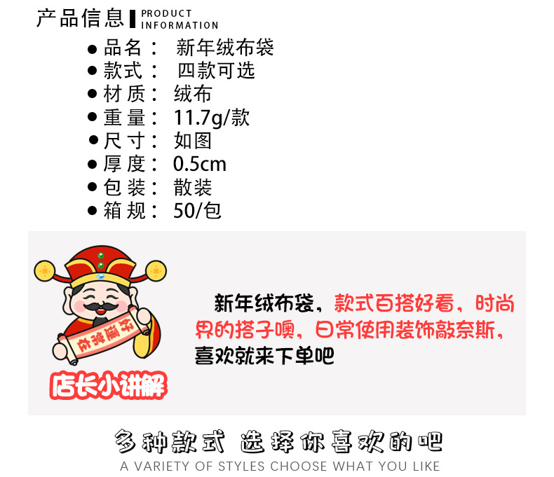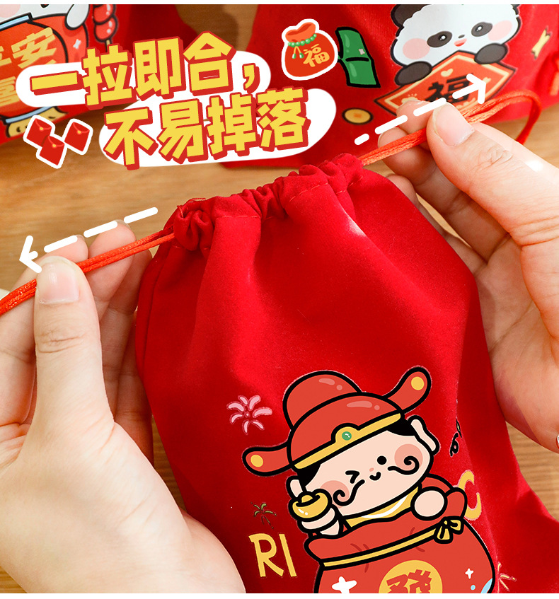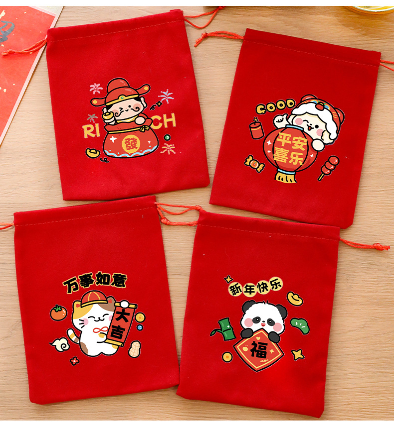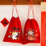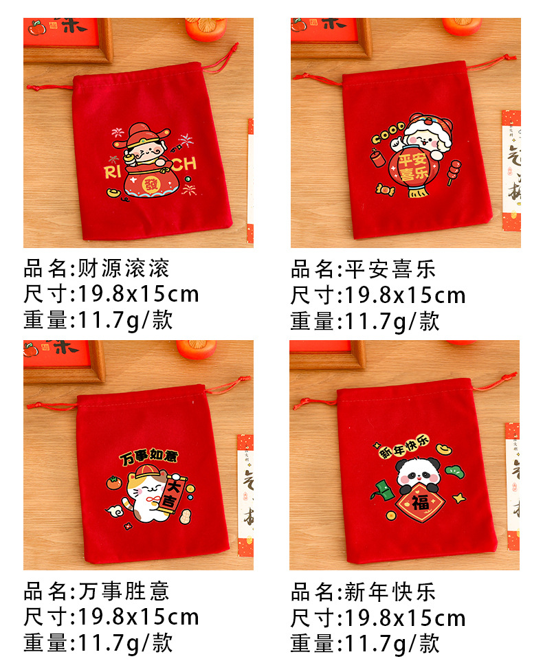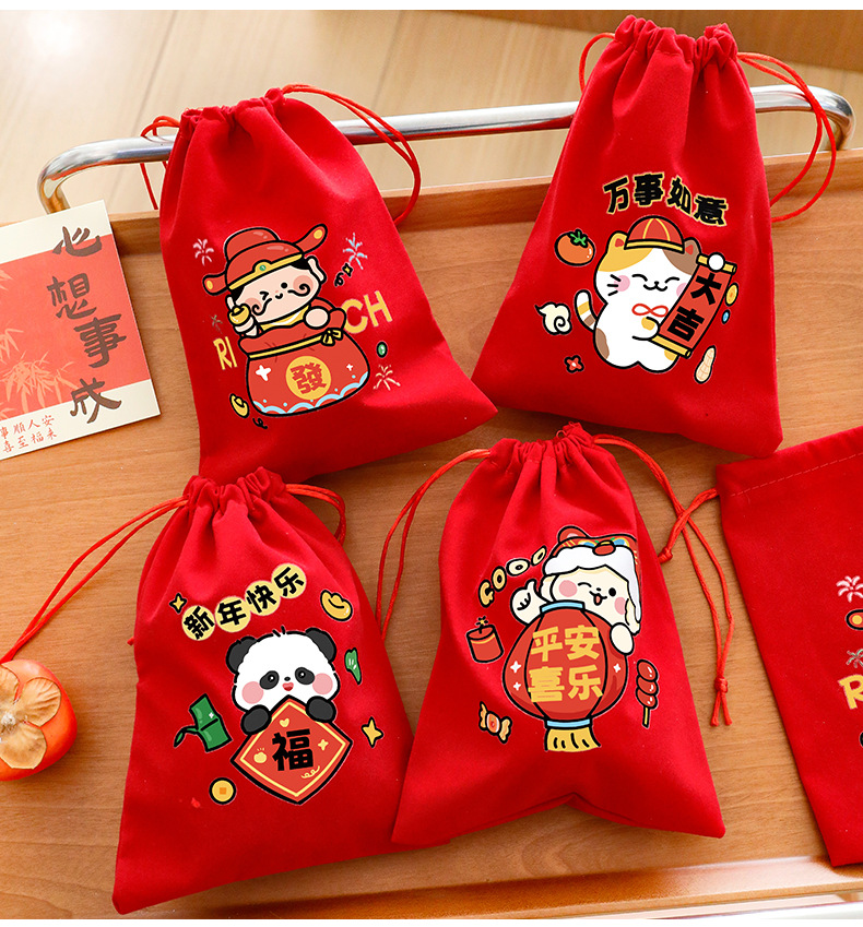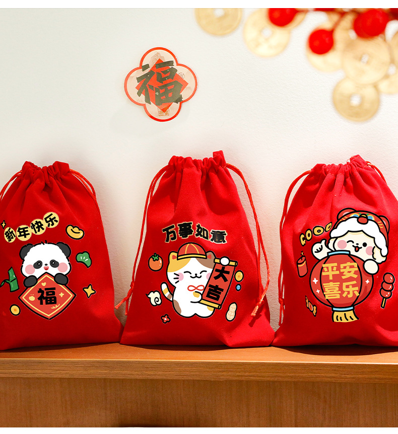 新年束口袋抽绳拉绳绒布收纳袋春节过年礼物包装袋学生新年小礼品