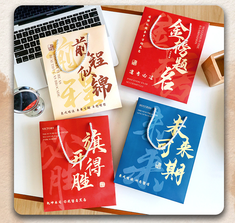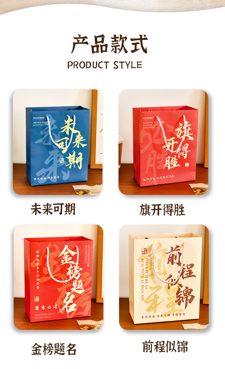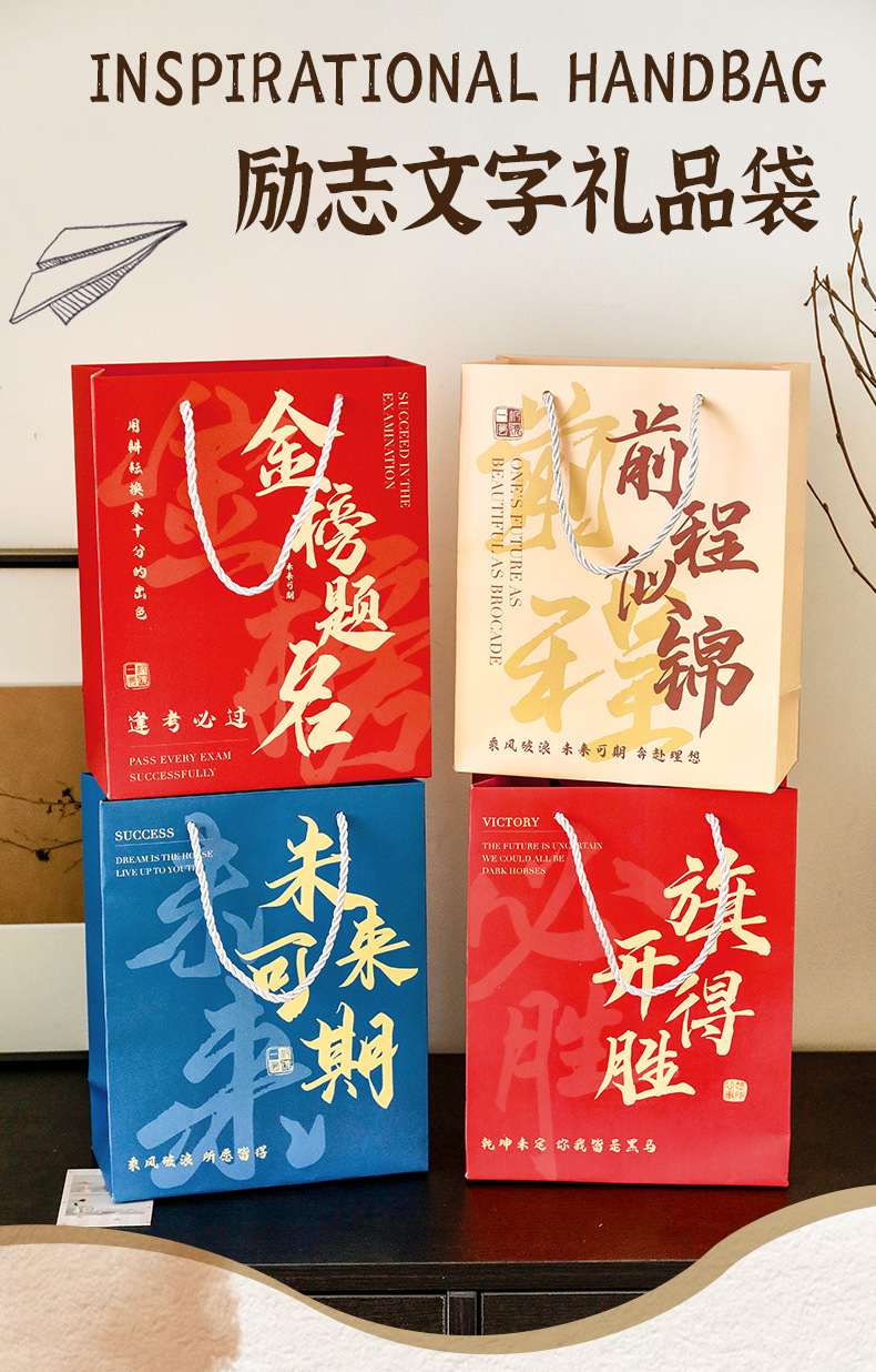 开学季礼品袋学生未来可期励志文字礼物包装袋大容量纸质手提袋子