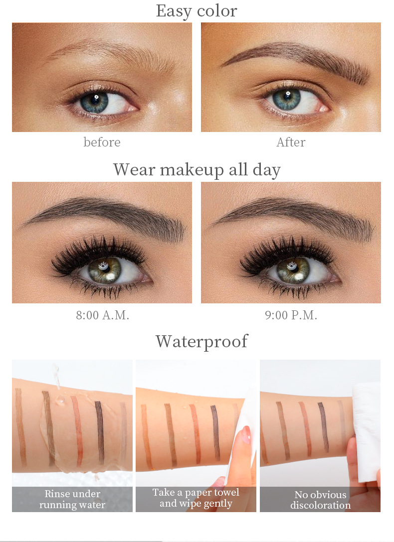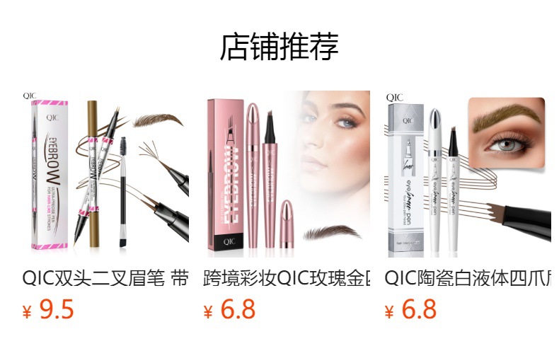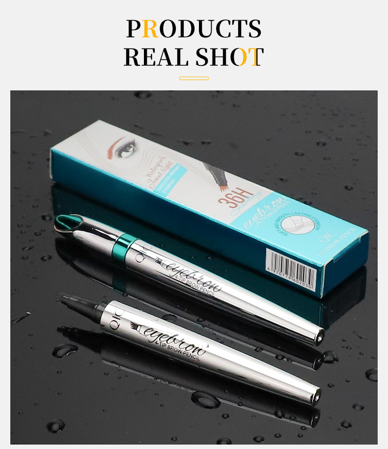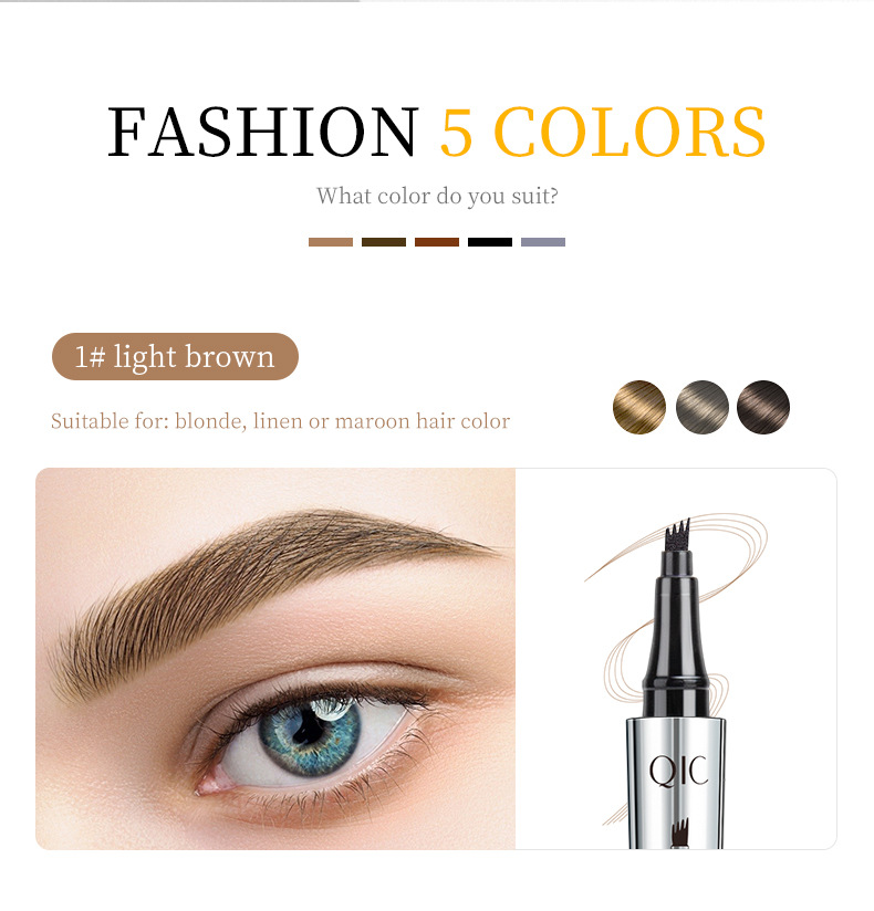 跨境亚马逊QIC日系四头眉笔 仿野生眉防水不晕染四爪分叉液体眉笔