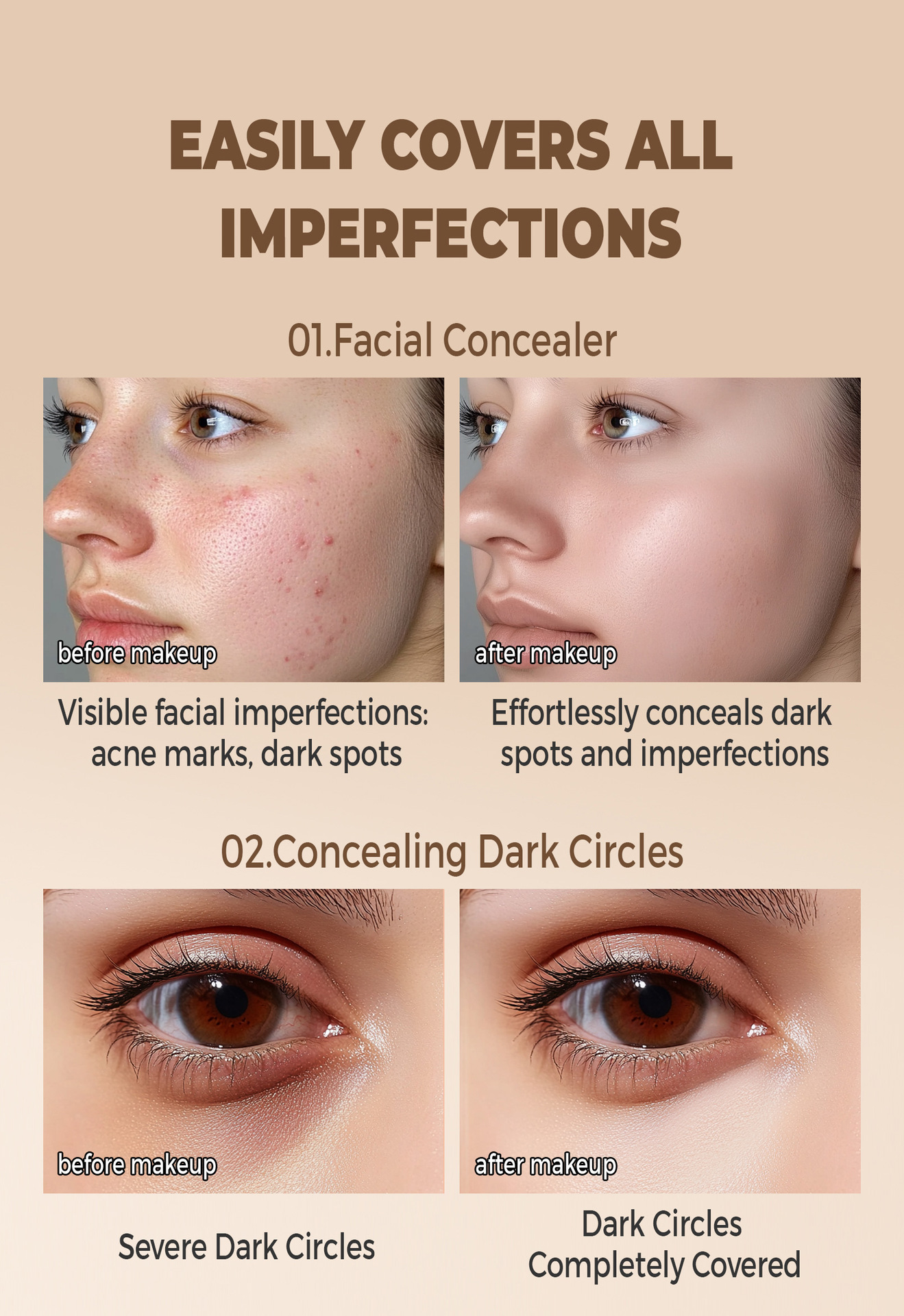 QIC三色遮瑕膏遮盖黑眼圈纹身痘印脸部遮瑕修容防水粉底膏美妆