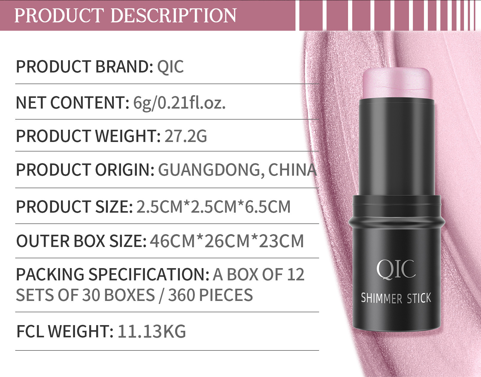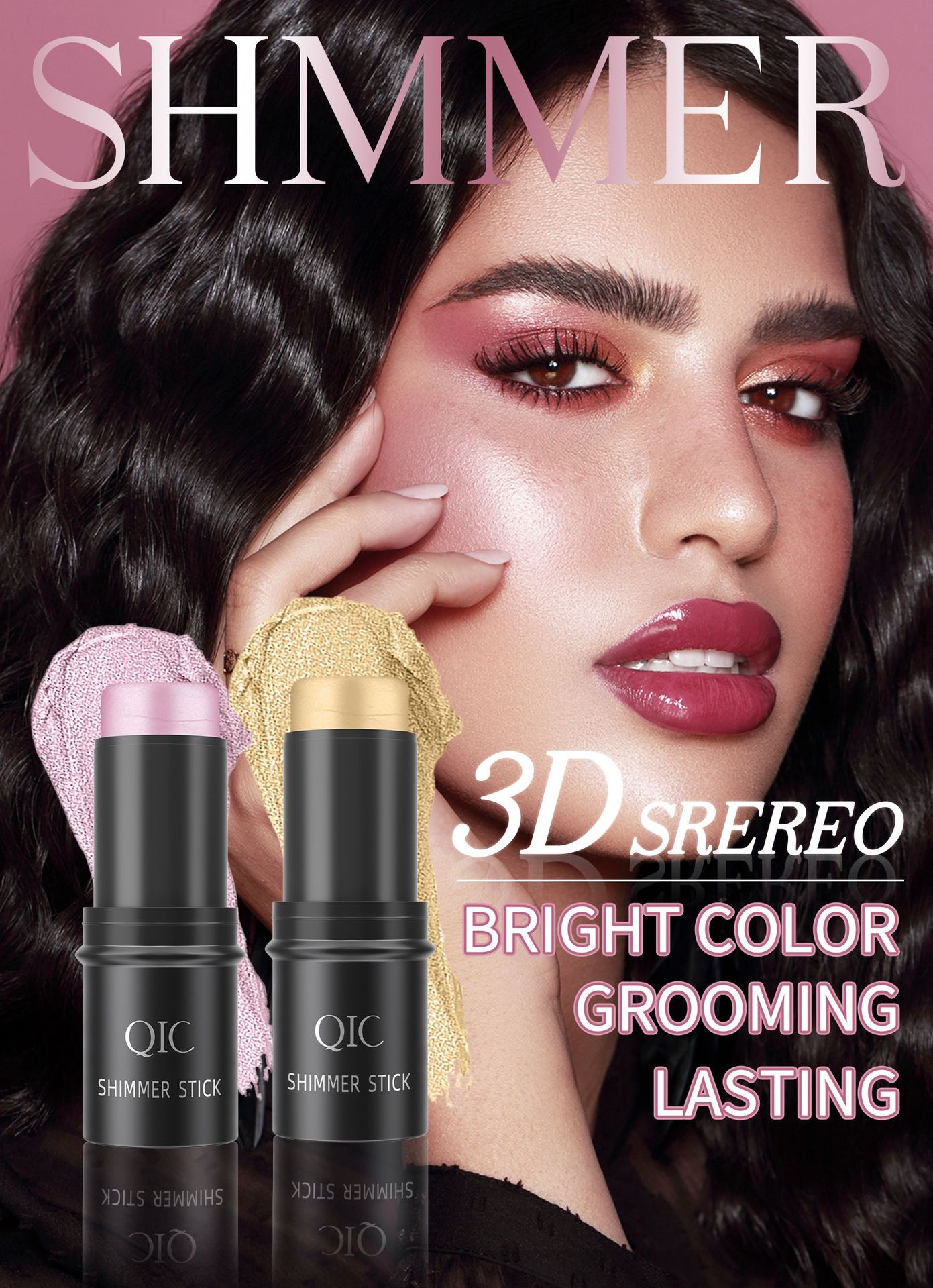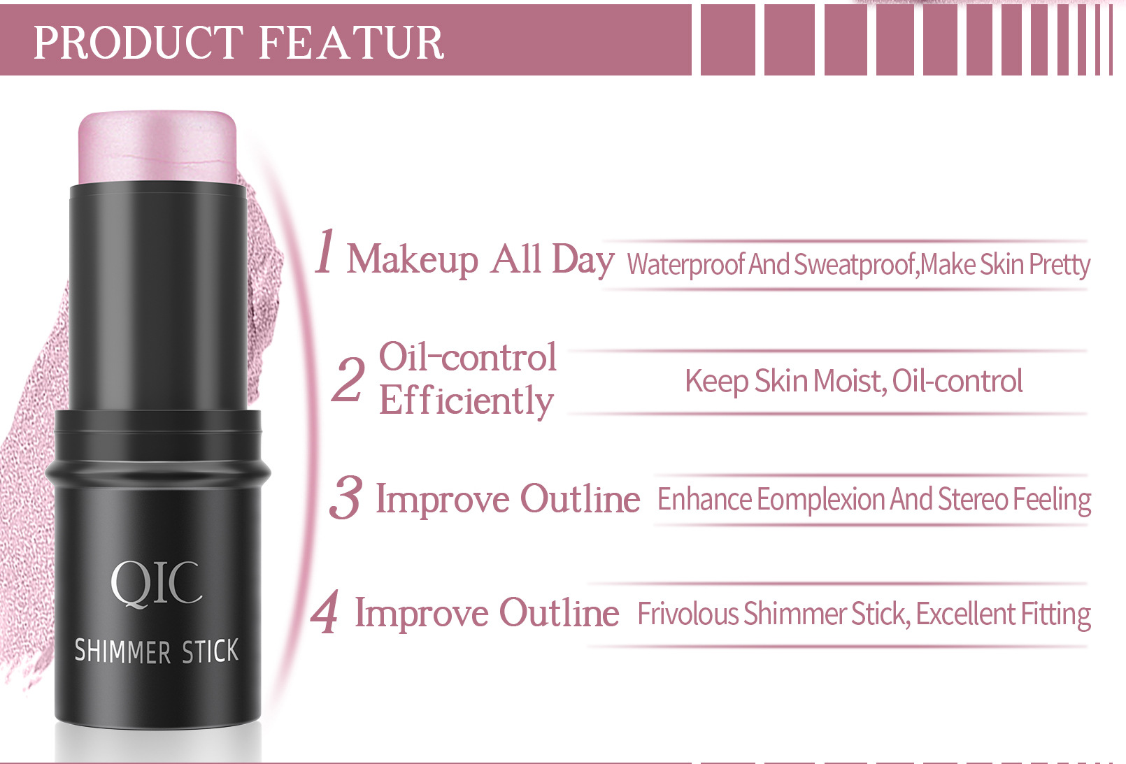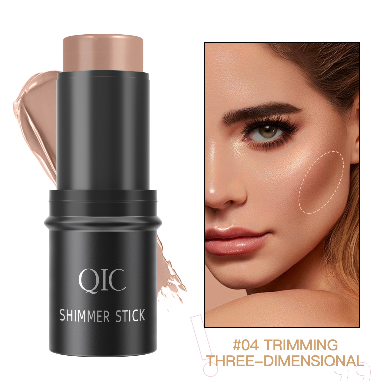 跨境彩妆QIC高光提亮阴影棒 立体脸部打底膏遮瑕腮红修容化妆棒
