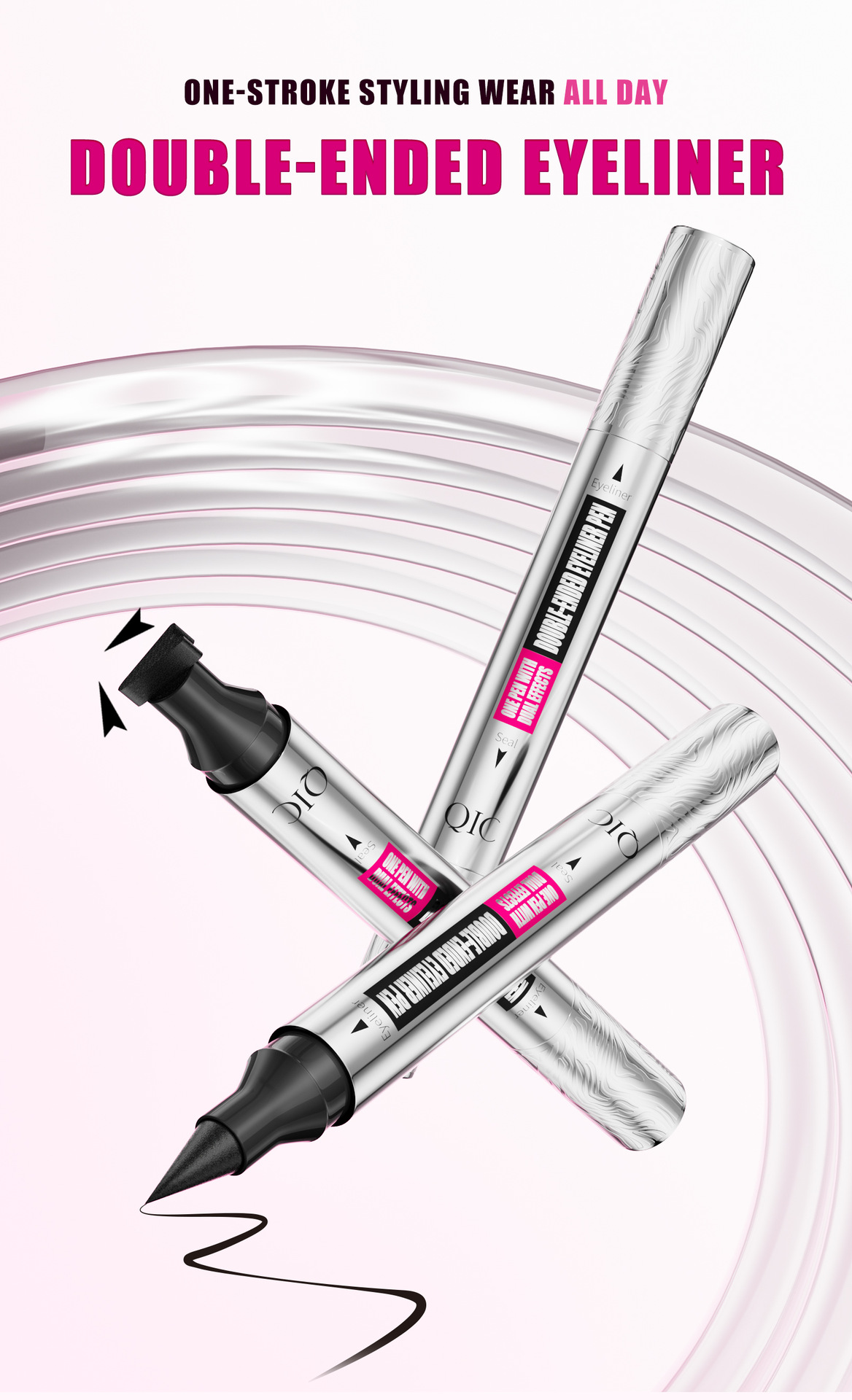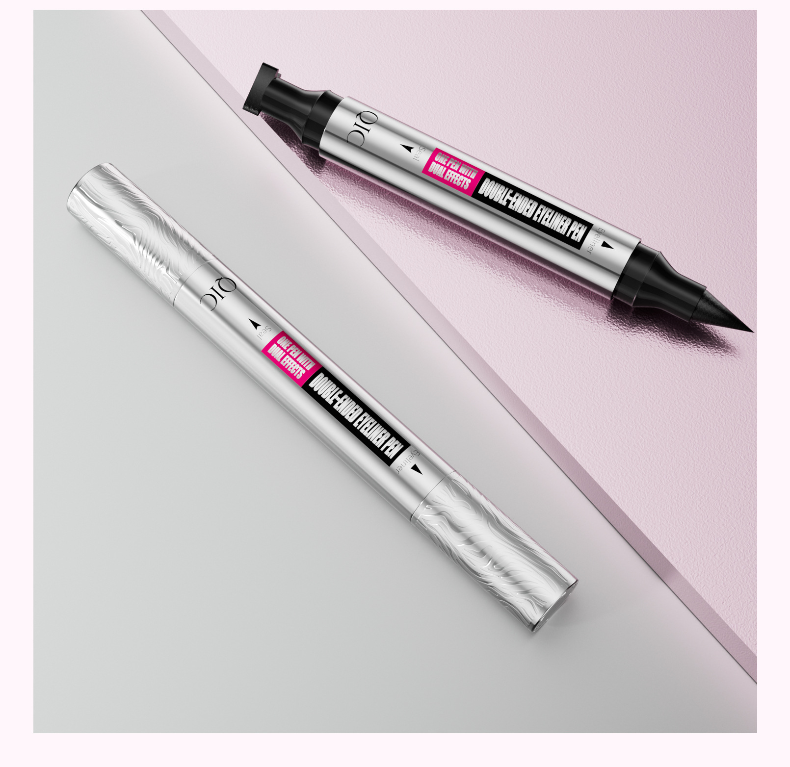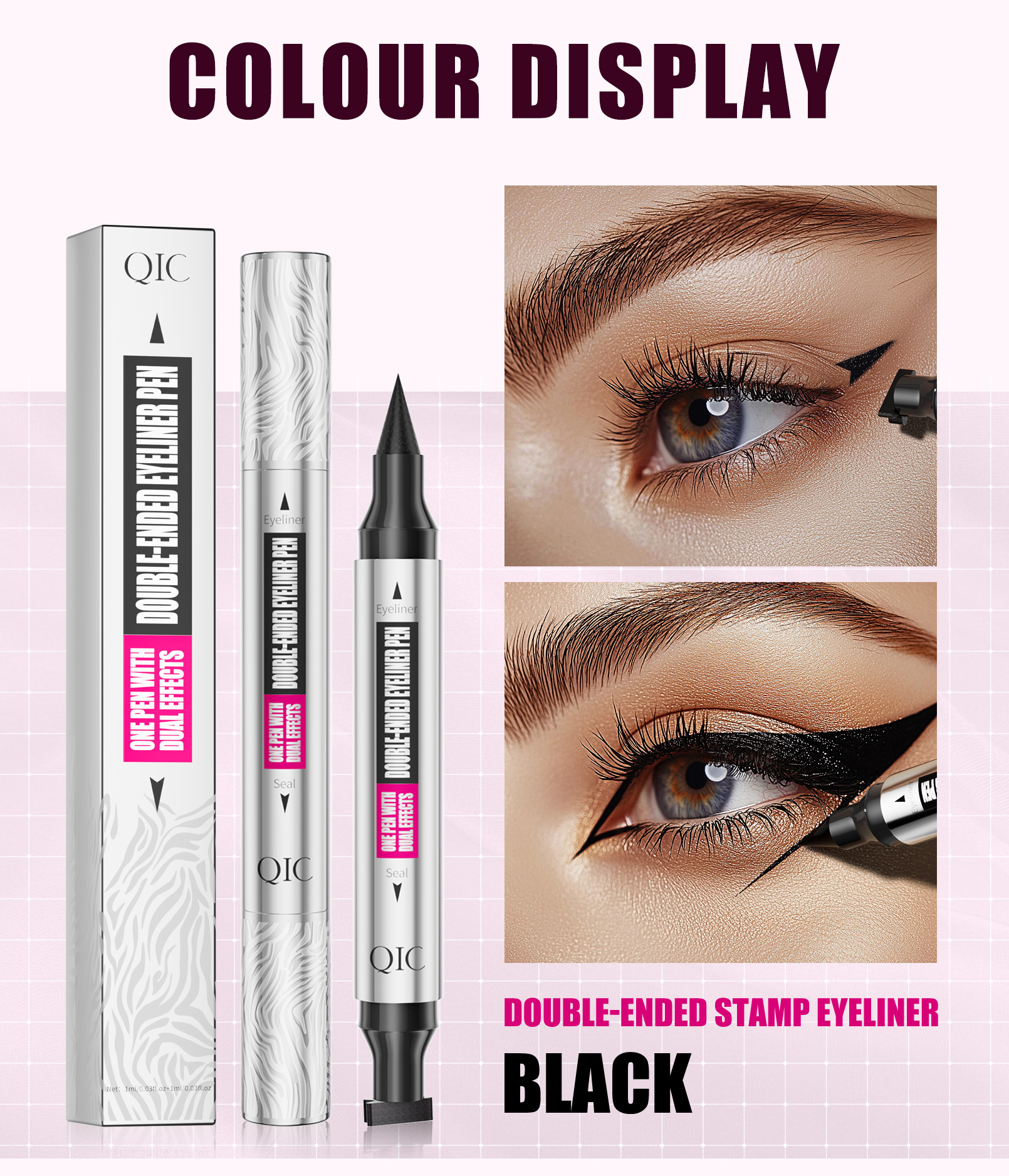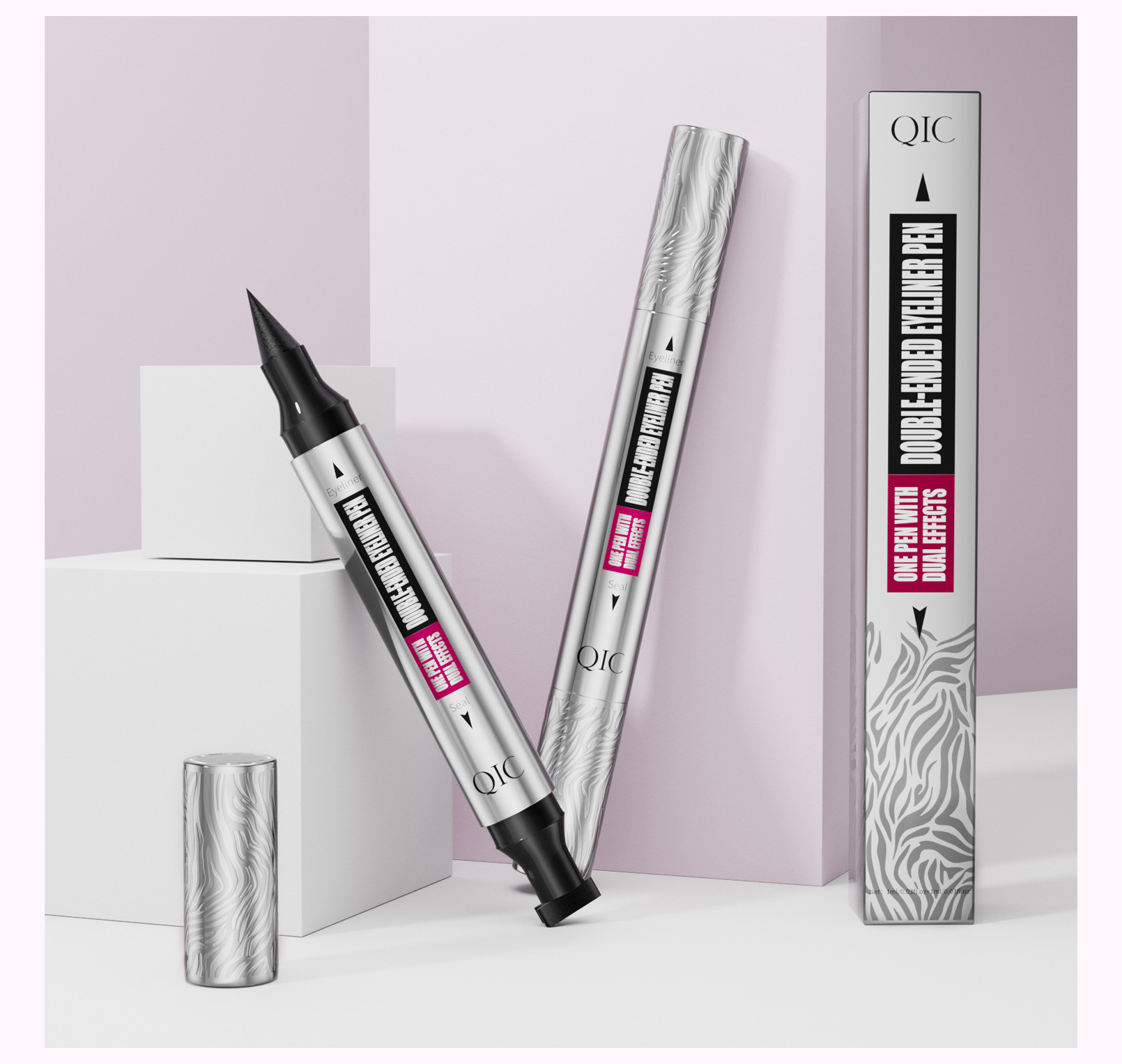 QIC新款三角印章眼线笔防水防汗不晕染银管双头二合一眼线液笔
