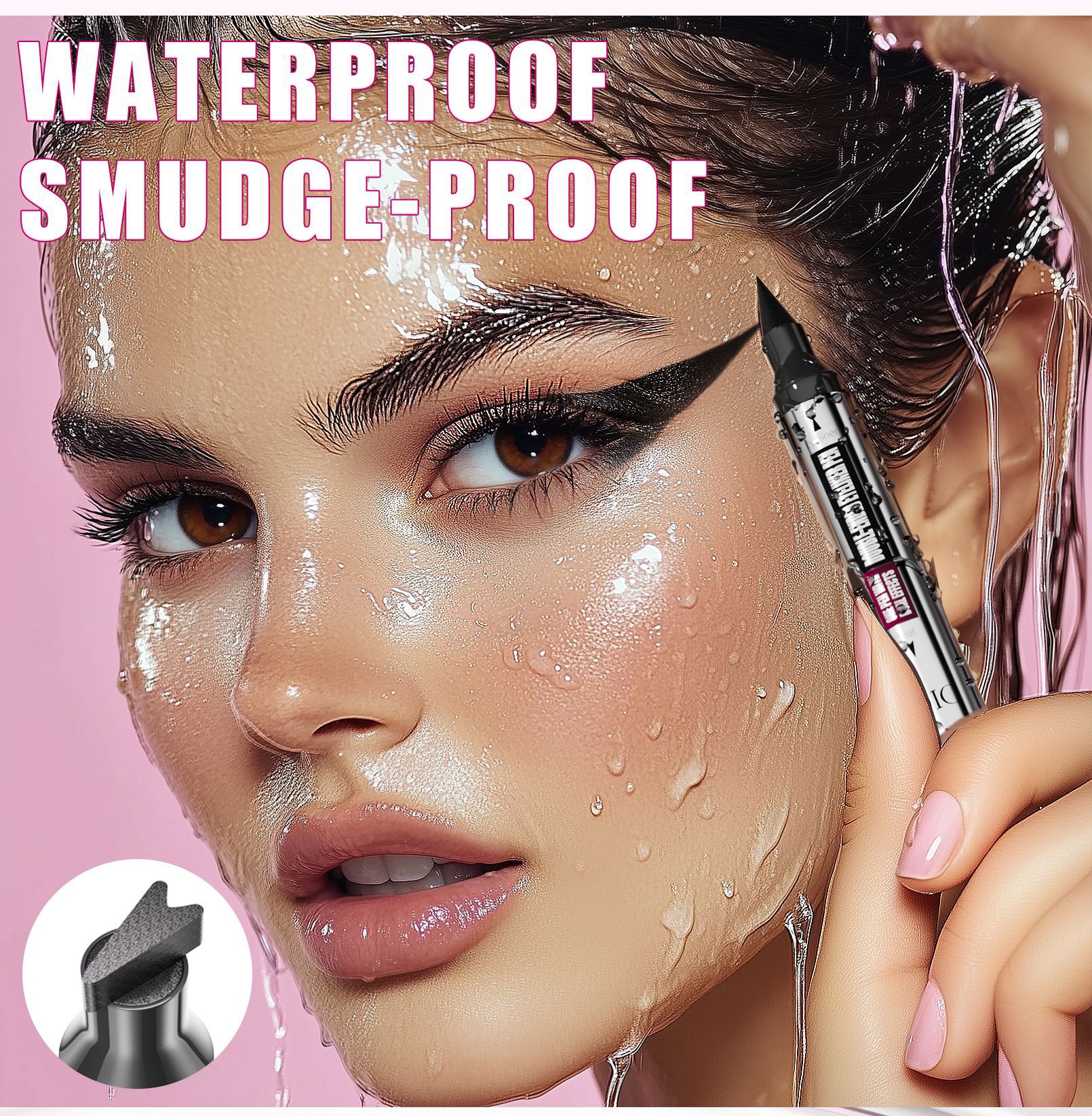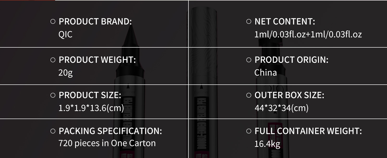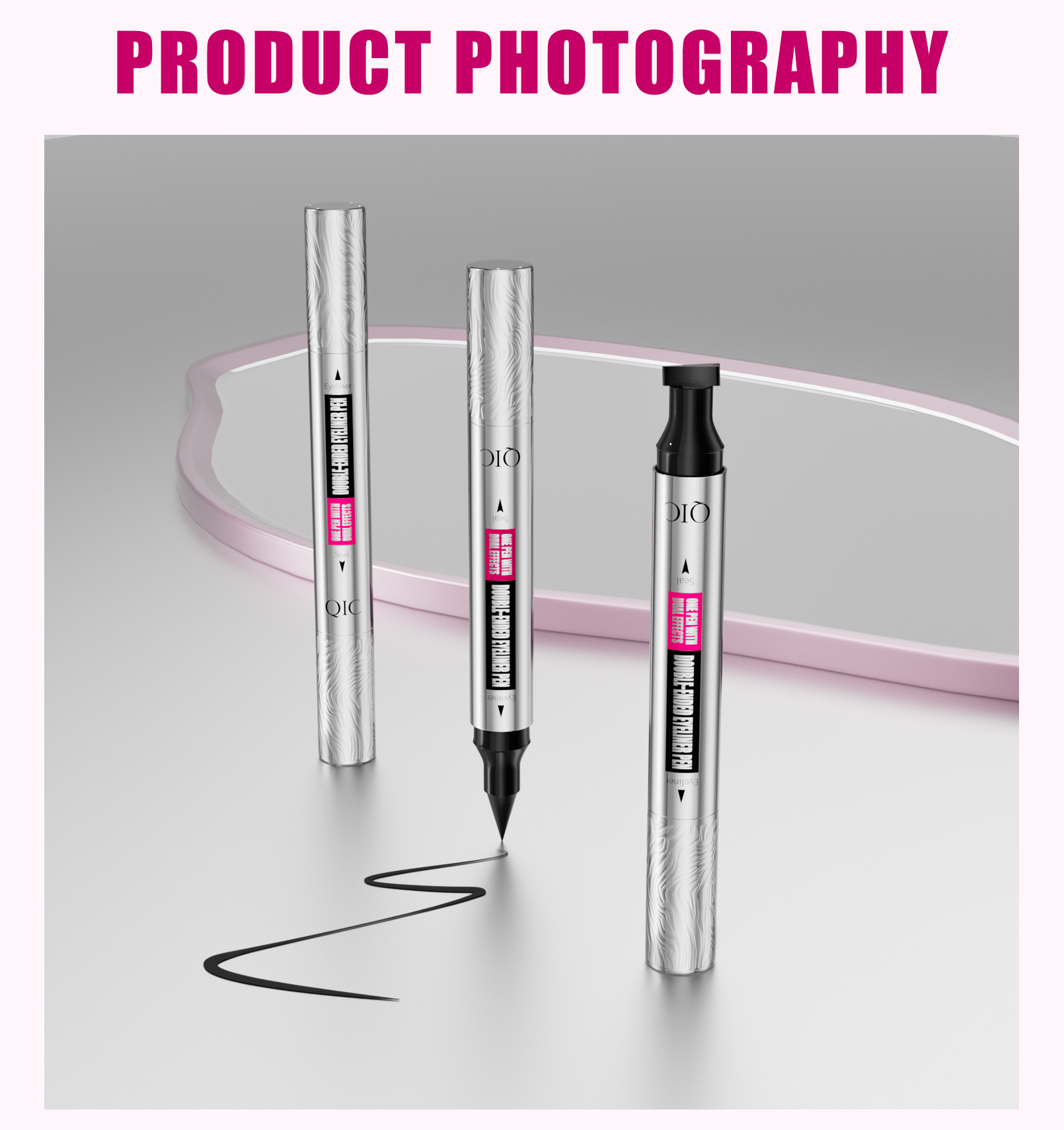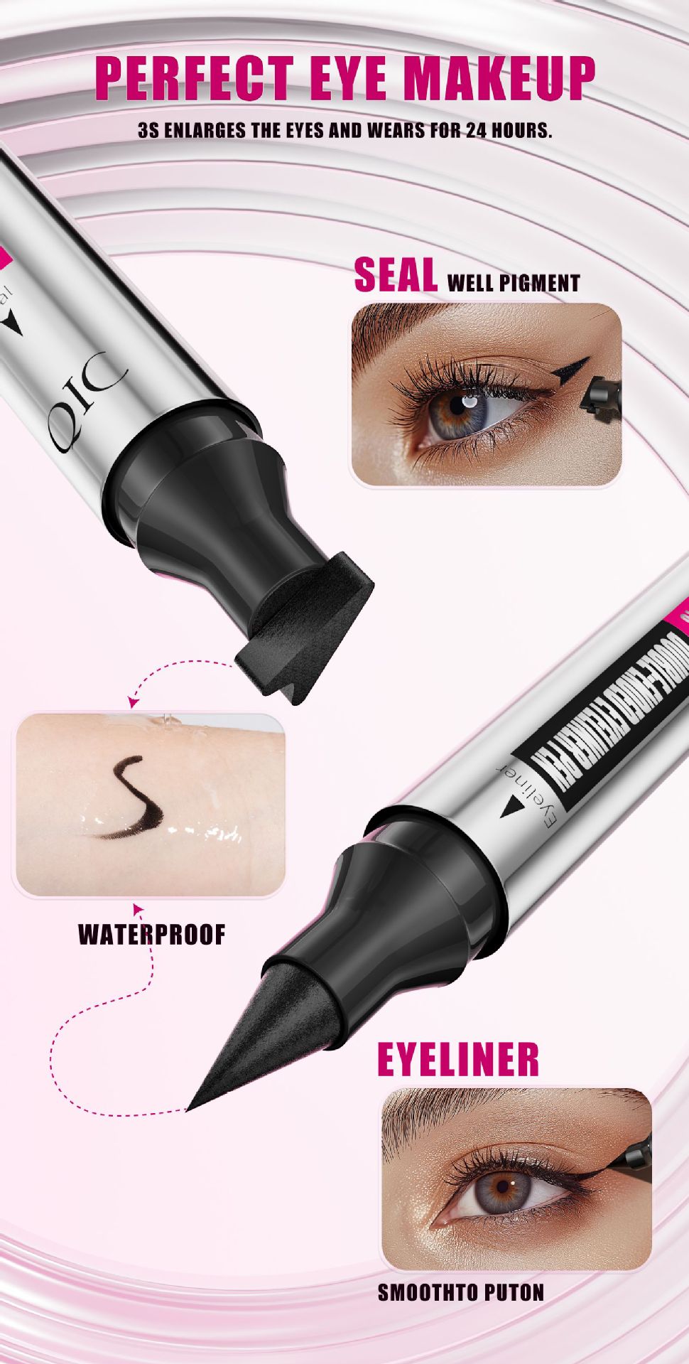QIC新款三角印章眼线笔防水防汗不晕染银管双头二合一眼线液笔