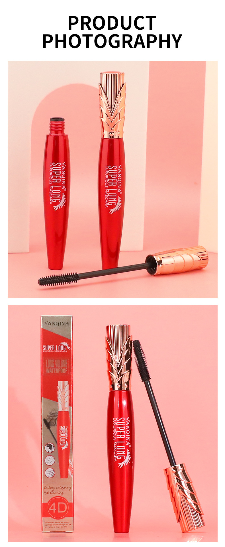 YANQINA皇冠头4D睫毛膏 防水防汗浓密卷翘不结块不晕染东南亚彩妆