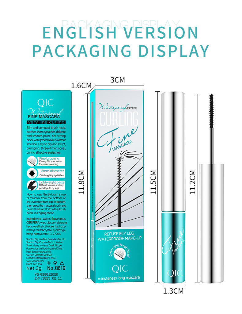 QIC日系细睫入微4d睫毛膏小刷头防水不晕妆不结块源头彩妆批发