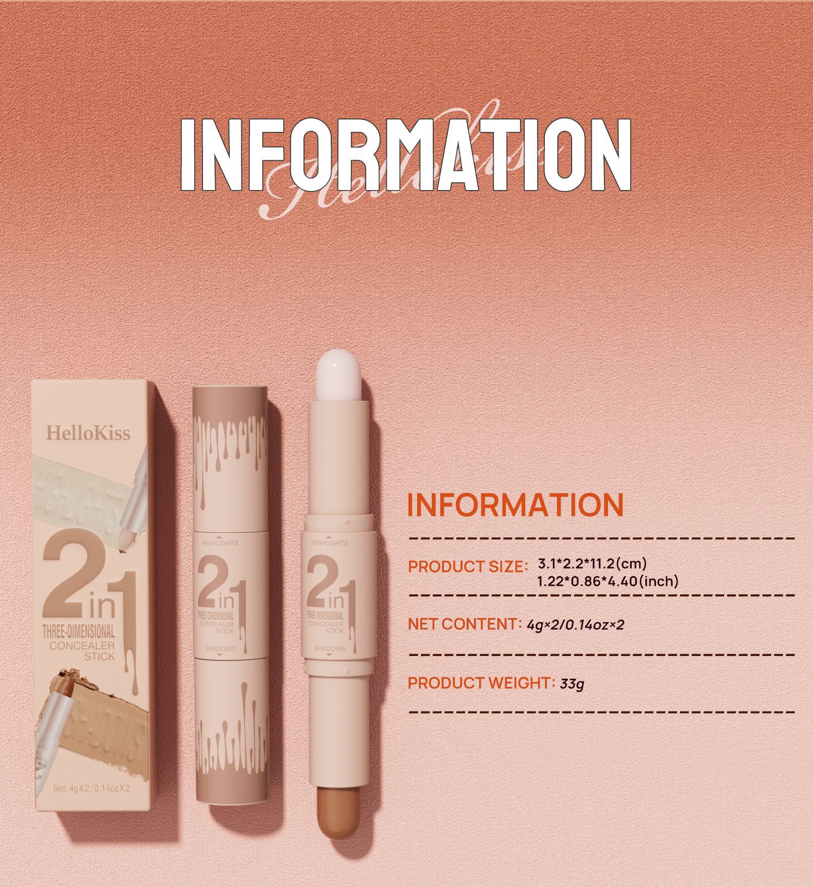 Hellokiss双头立体高光修容棒 修饰鼻影阴影侧影遮瑕笔跨境彩妆