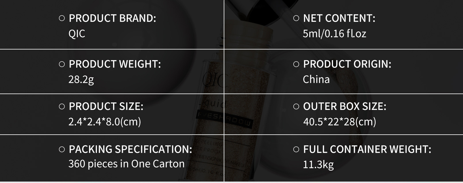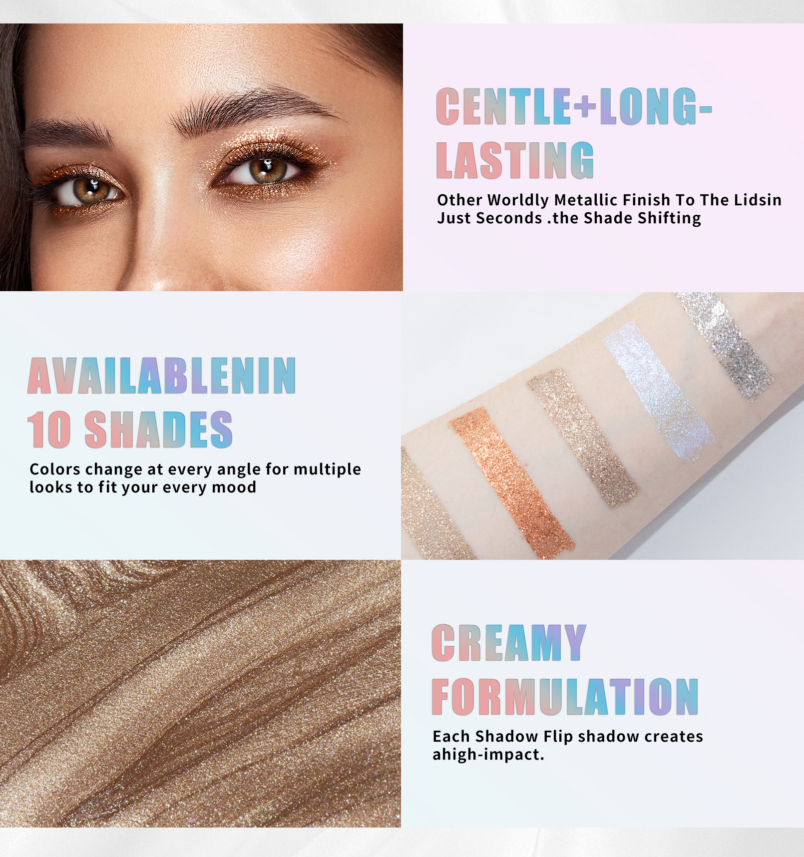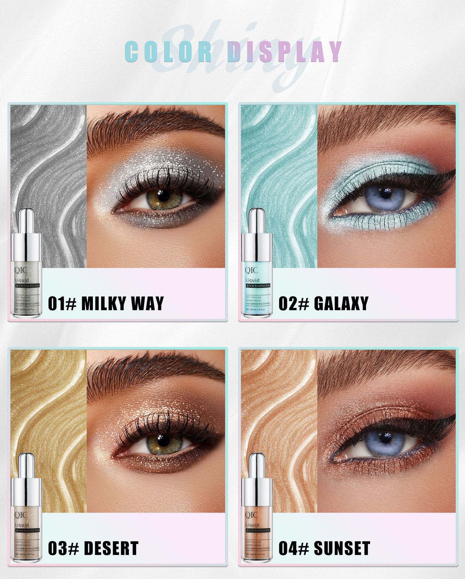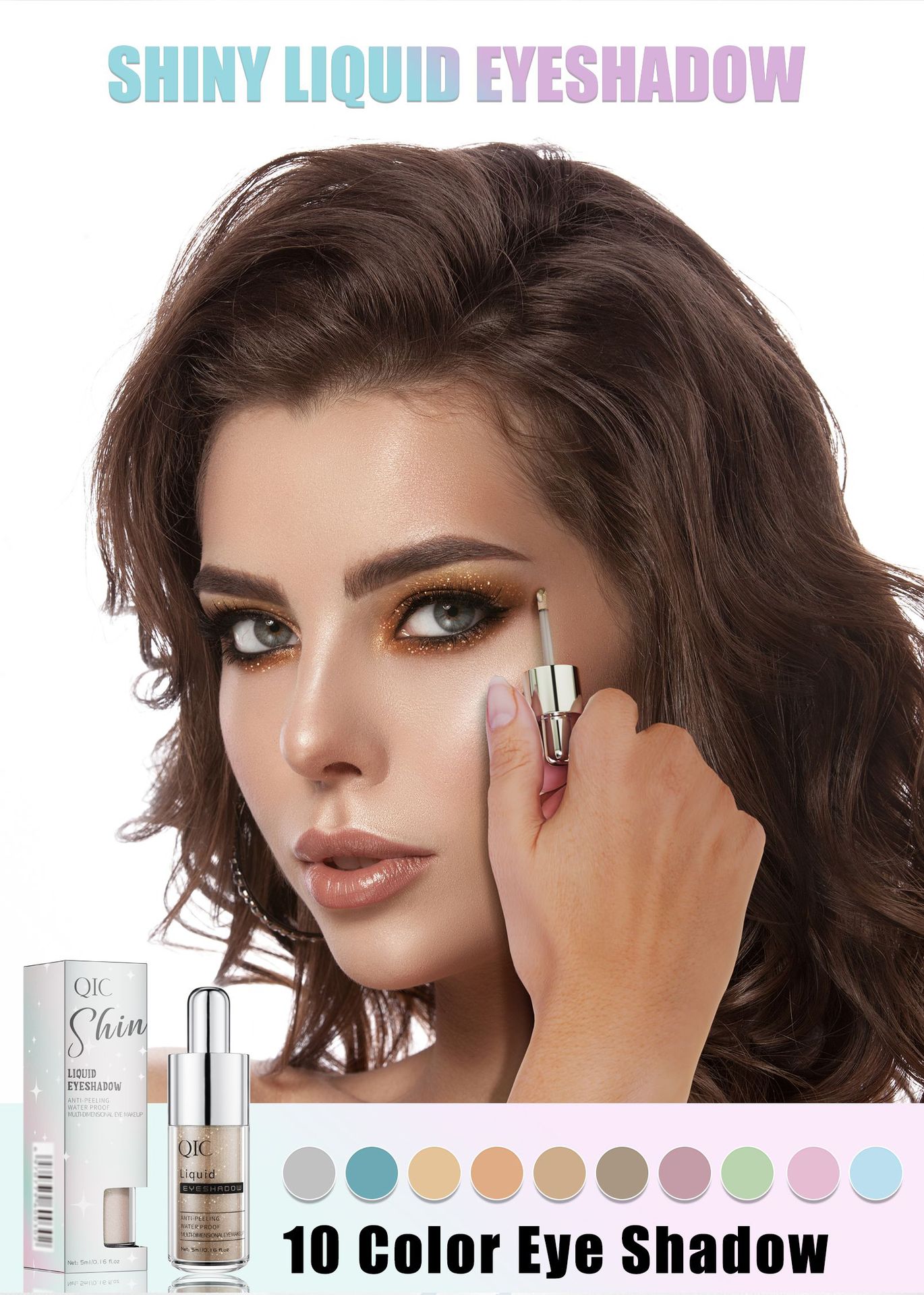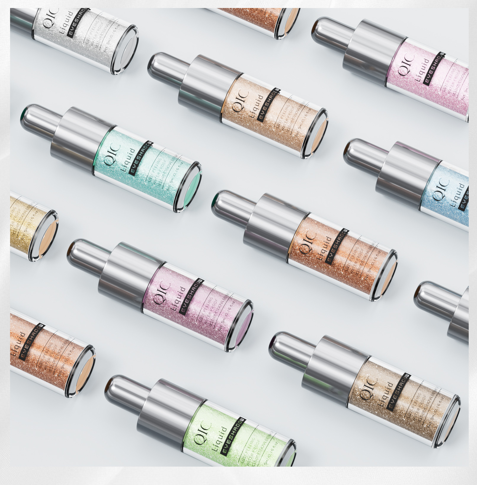 QIC小奶瓶十色液体眼影 闪粉亮片细闪珠光变色龙眼影液跨境彩妆