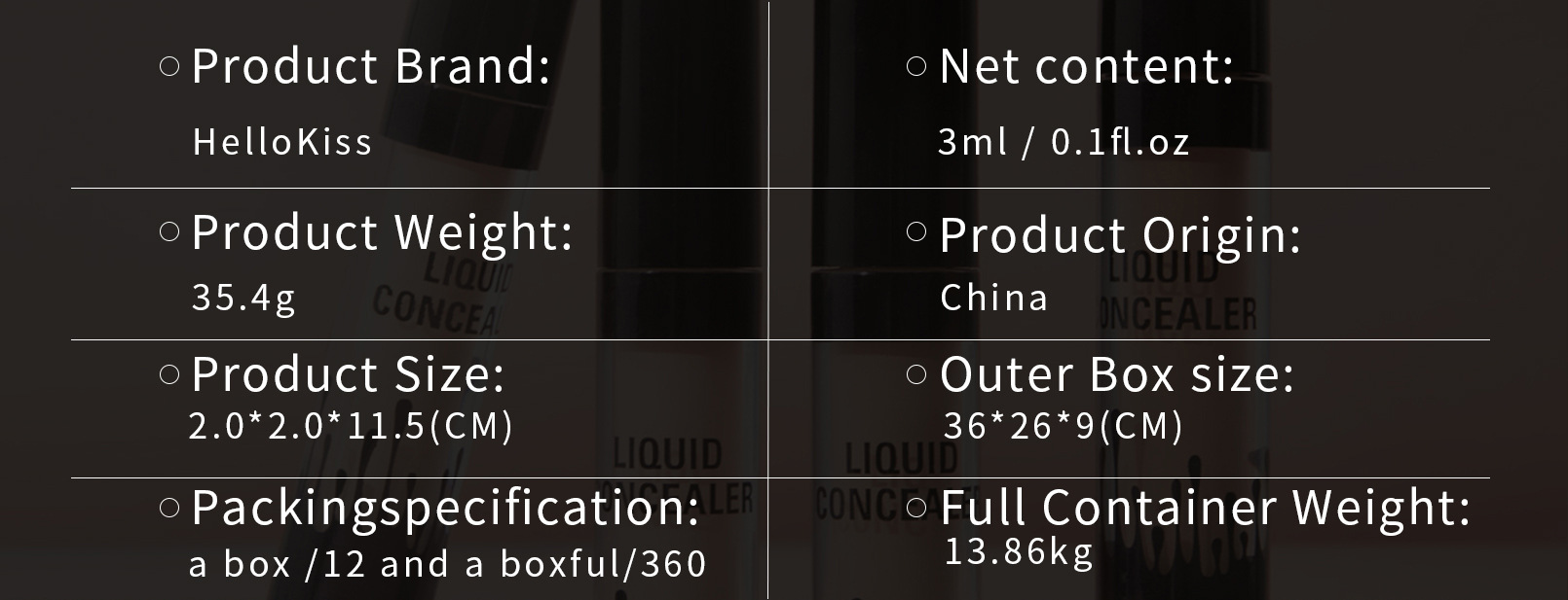 Hellokiss遮瑕液遮盖脸部斑点雀斑痘印黑眼圈防水遮瑕笔外贸彩妆