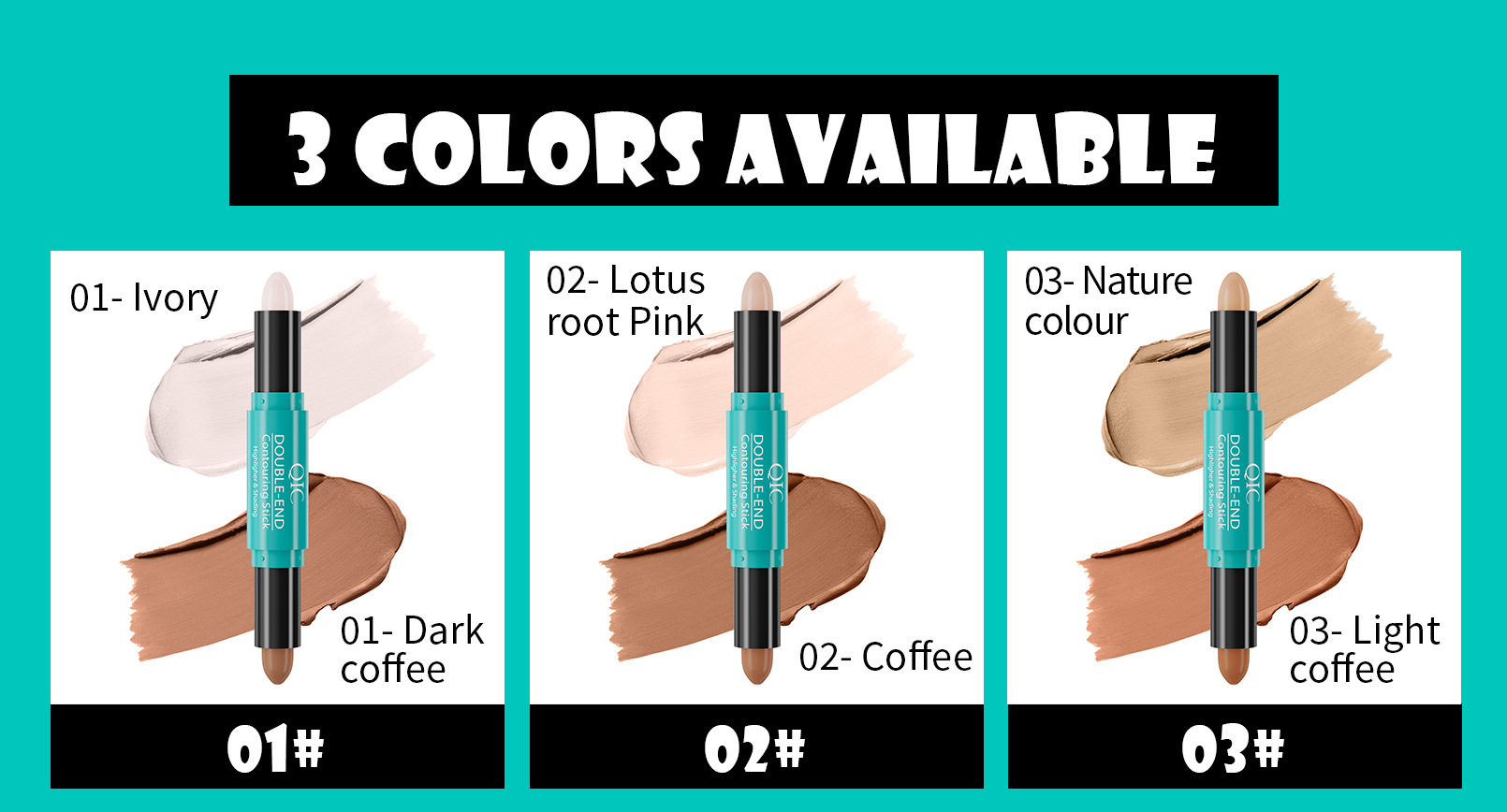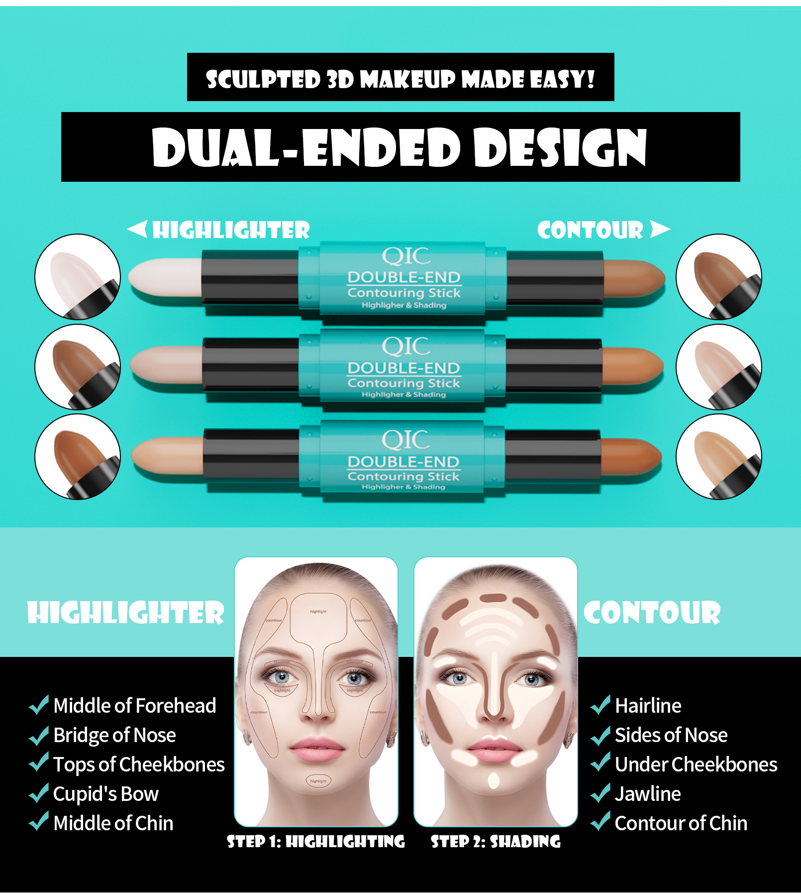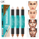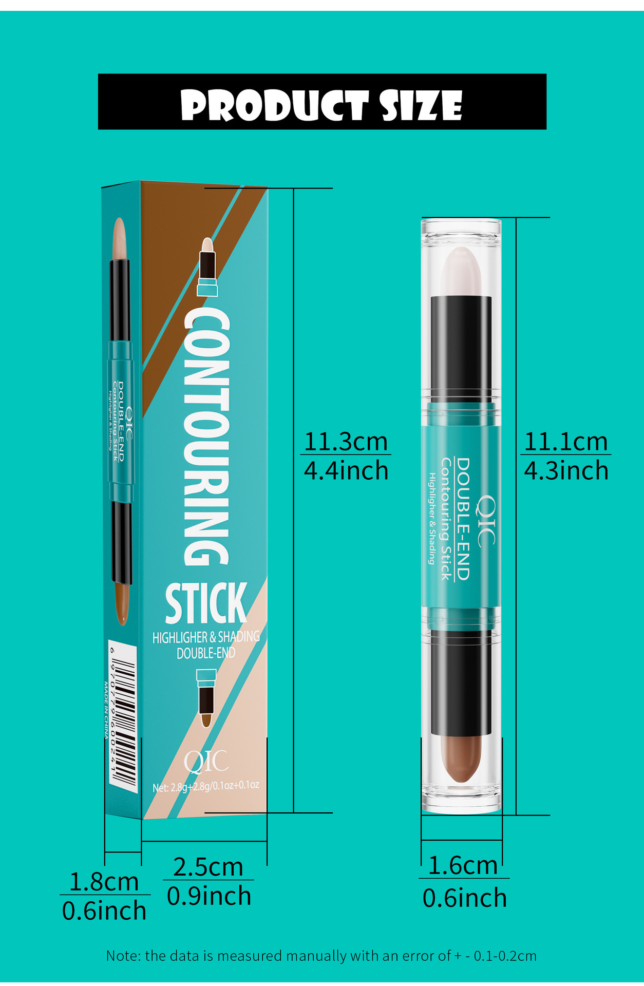 QIC绿管修容棒双头两用高光提亮遮瑕阴影自然立体化妆棒跨境彩妆